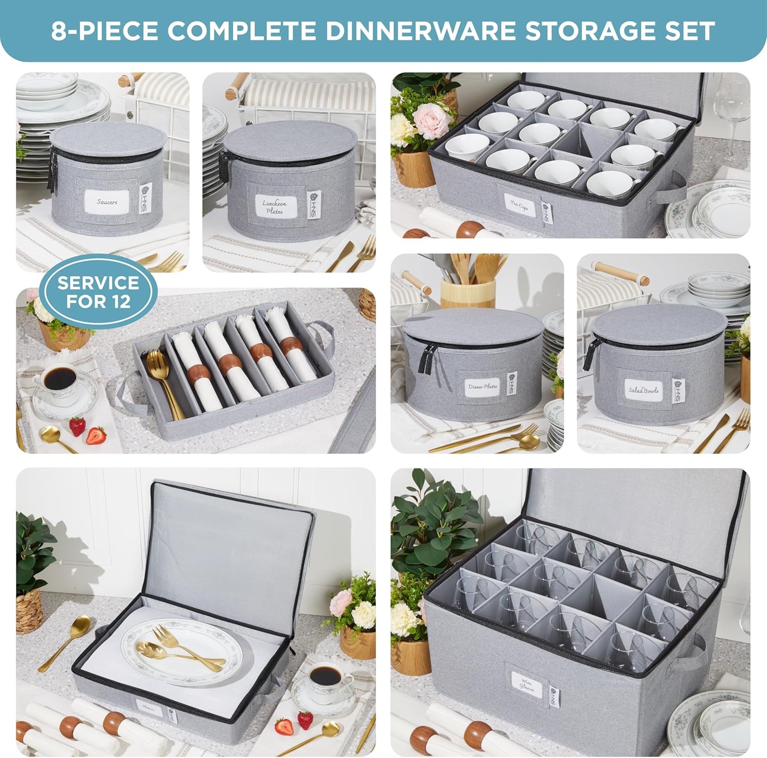 - 8 PIECE CHINA STROAGE SET: With a versatile 8-piece set, you have ample storage options to organize and safeguard your dinnerware, glasses, mugs, saucers, and plates, making it convenient to store all your China in one place.