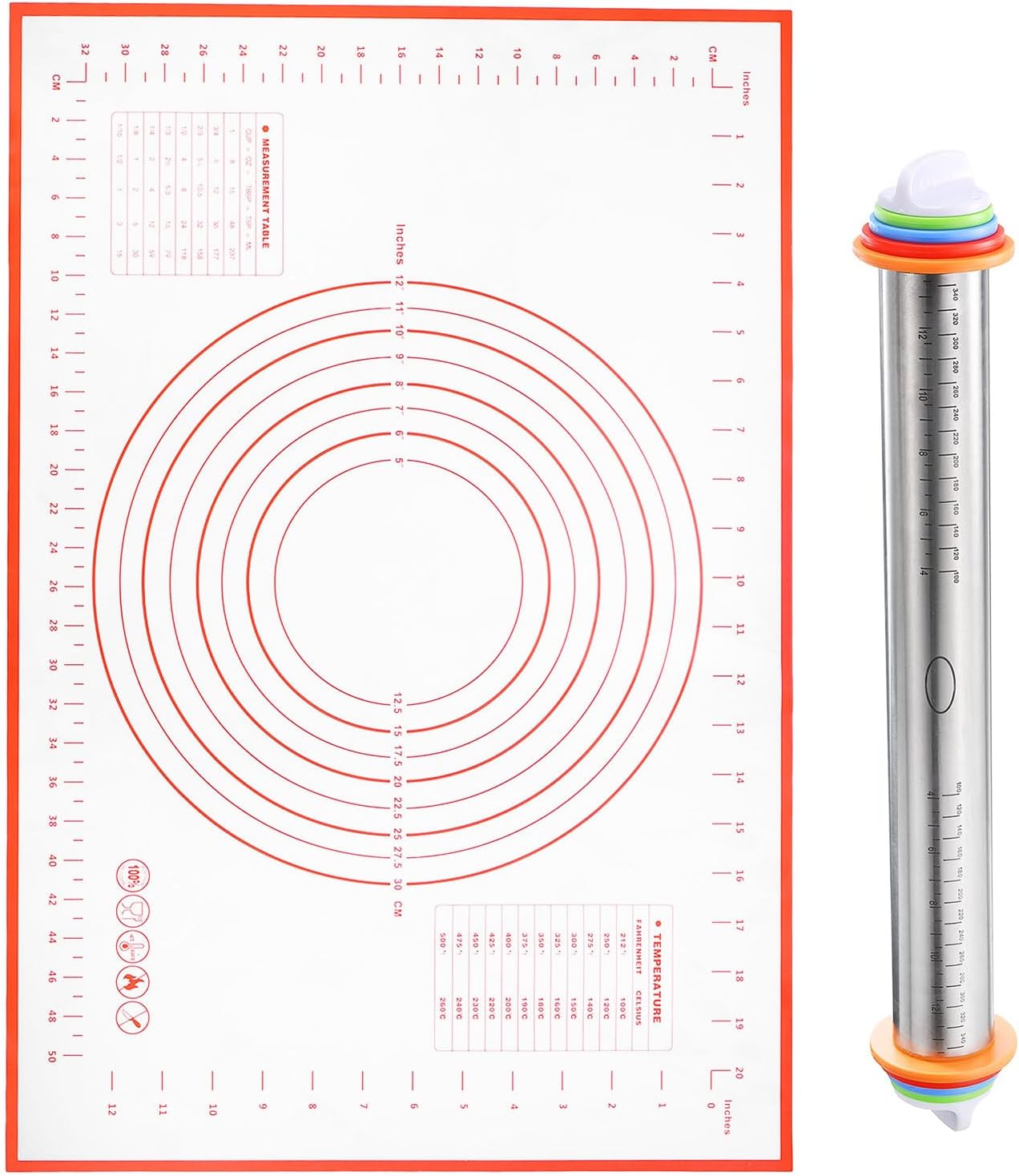 - Size - The plastic rolling pin measures 16.9 Inch x 1.69 Inch /43cm x 4.3cm (L*D), and is very light for long-time use without tired hands, and the size of the baking mat is about 23.6 inches ×15.7 inches(60cm*40cm )