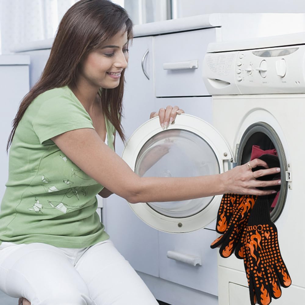 - Easy to clean and store: Our heat resistant gloves can be easily cleaned either by machine washing or hand washing. The inner side of the cuffs features a convenient loop for hanging and drying, making storage a breeze.