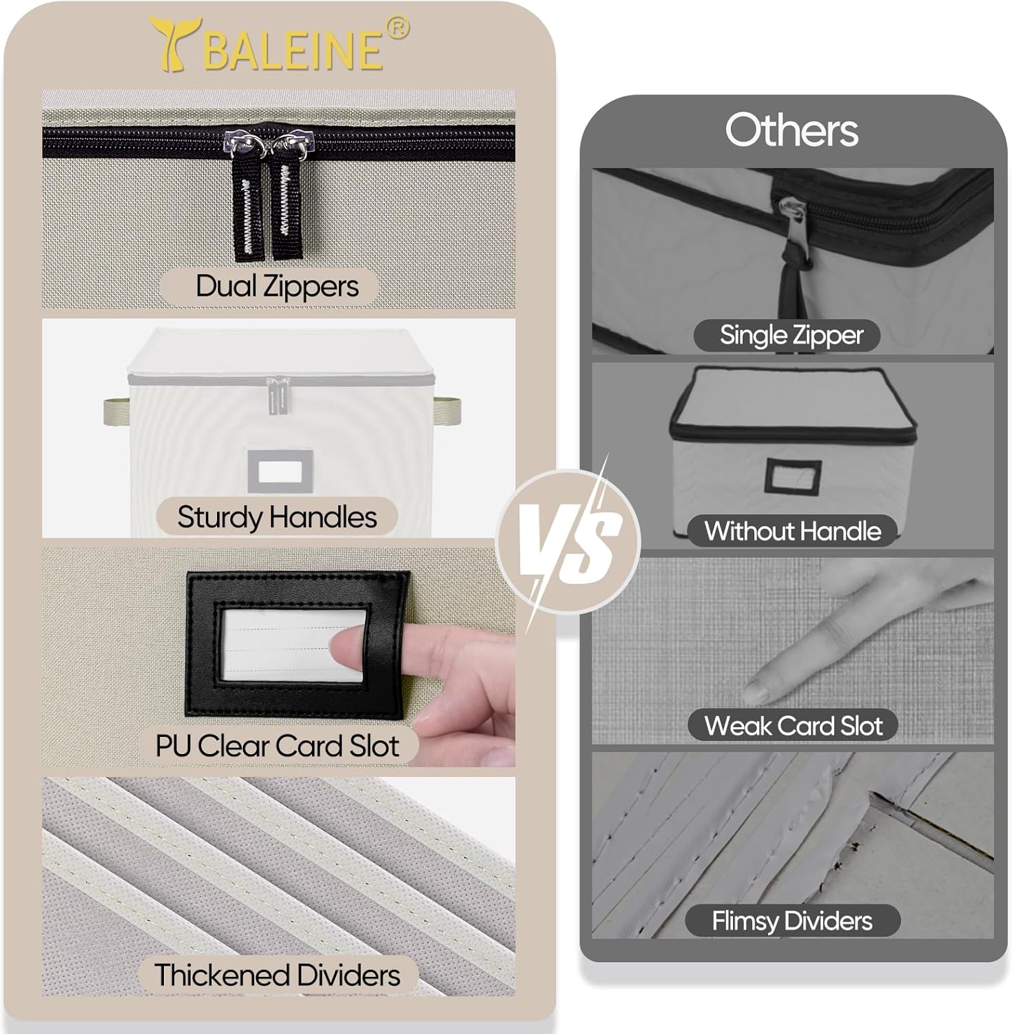 - Sturdy Protection: This china storage container offers excellent protection for your dinnerware, keeping plates, cups, and glassware safe during transport; The soft, padded lining prevents scratches and breakages, providing peace of mind during storage or moving