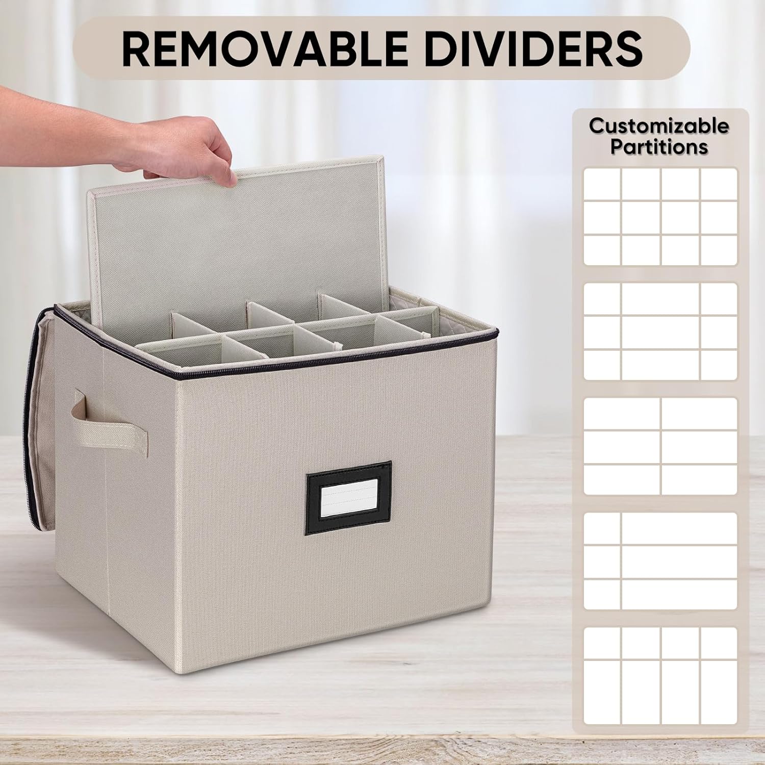 BALEINE China Storage Containers, Sturdy Quilted Wine Glass Storage, Plate Organizer with Carry Handles, Moving Boxes for Dishes, Cups, Mugs and Stemware (Champagne Flute, Hard Shell Cream)