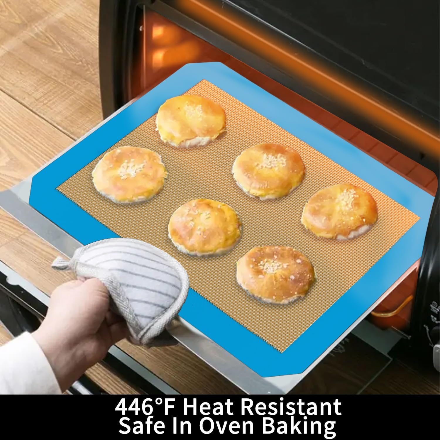 - PREMIUM QUALITY - Made of food grade liquid silicone coated fiberglass,PFOA free,with ultra thickness of 0.75mm,durable and reusable for up to 1000 times.Save a lot of money for buying parchment paper.