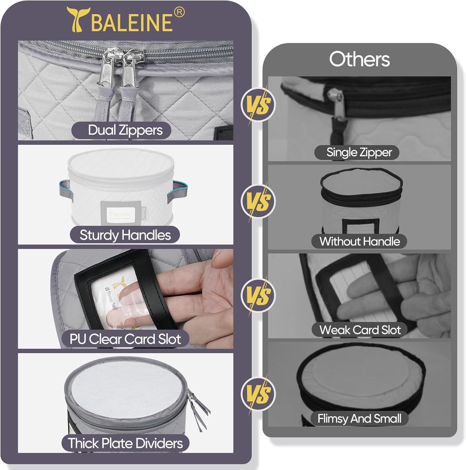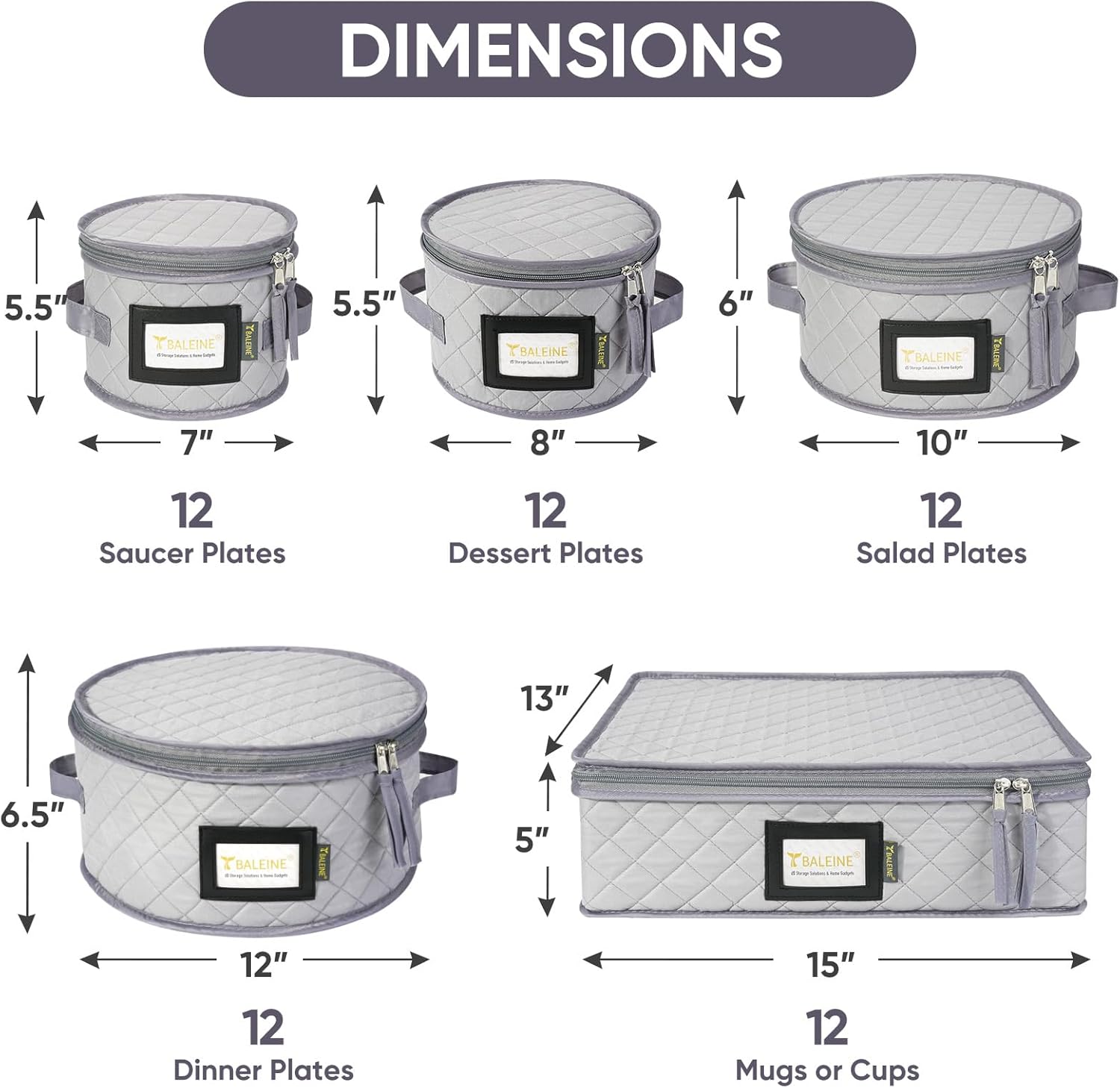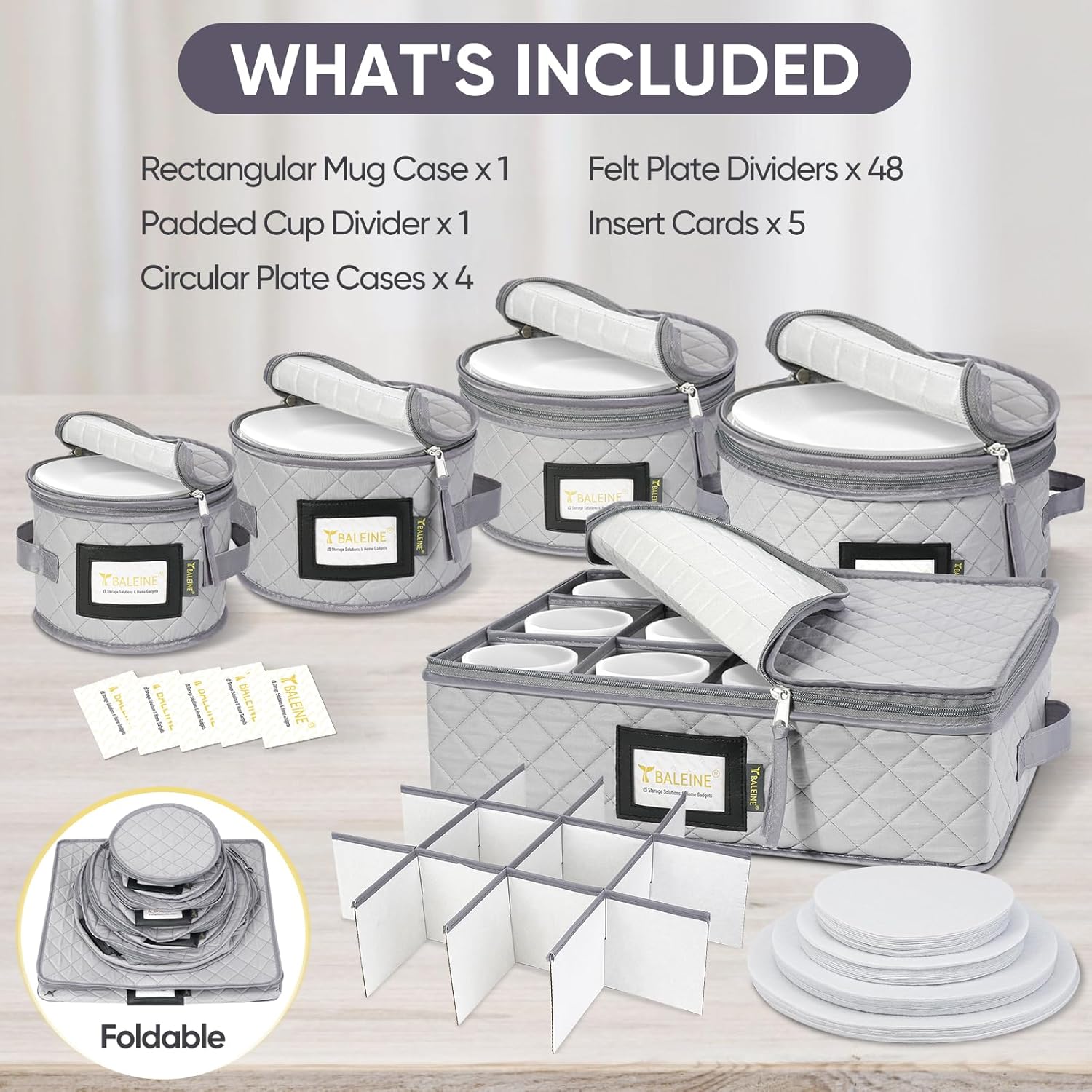 BALEINE China Storage Containers, Sturdy Quilted Wine Glass Storage, Plate Organizer with Carry Handles, Moving Boxes for Dishes, Cups, Mugs and Stemware (Plate Mug Combo, Soft Shell Grey)
