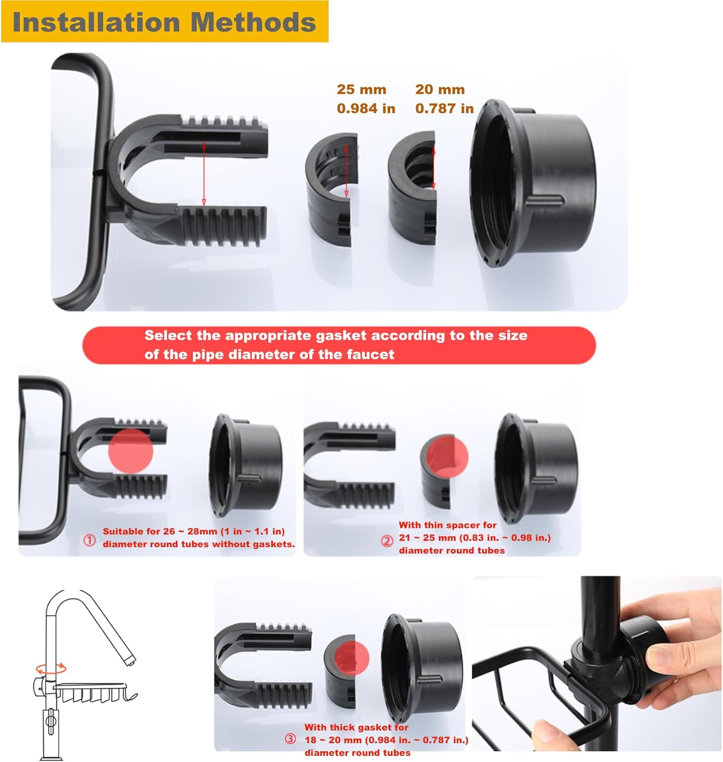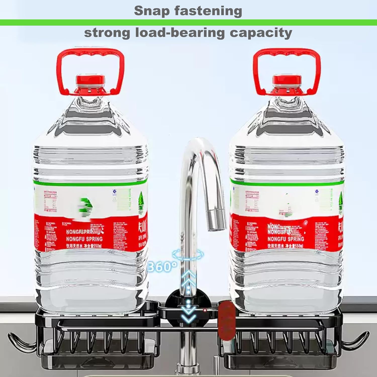 - ✔️【easy installation】No tools are required. Simply insert the product onto the faucet rod and tighten the knob. Easy to install and remove, will not damage or stain your sink. The faucet sponge holder can be used not only for the kitchen sink but also for the bathroom to store shampoo, soap and other items, eliminate clutter and better organize your sink and countertops. This faucet holder is very suitable for your kitchen and bathroom.