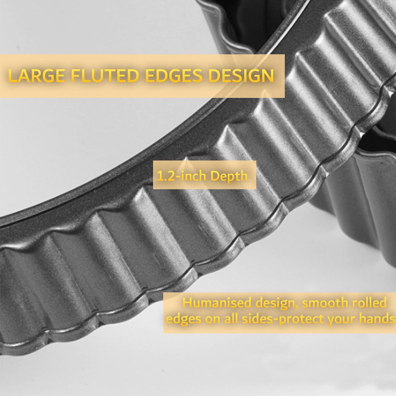 - 【DURABLE & RELIABLE TART PAN】The DATANTYA non-stick pan 9 inch detachable tart pan with removable bottom is made of heavy-duty carbon steel and non-peeling coating, classy and chic fluted sides and perfect for creating individually-sized desserts. Every completed pastry with our quiche pan will have a professional look.