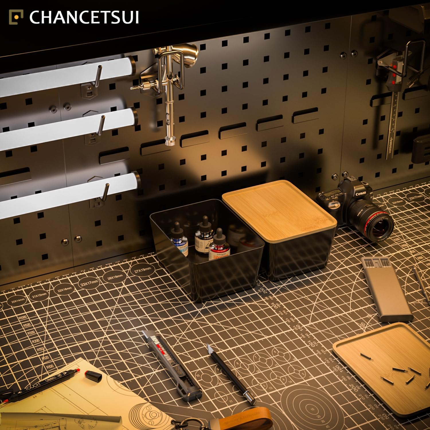CHANCETSUI Stackable Storage Bins lids For Workplace: 5X7 Black Storage bins, Office Desk Accessories Storage Containers with Lids, Stackable Bins for Home and Office Organization, bamboo Lid, 2 Pack