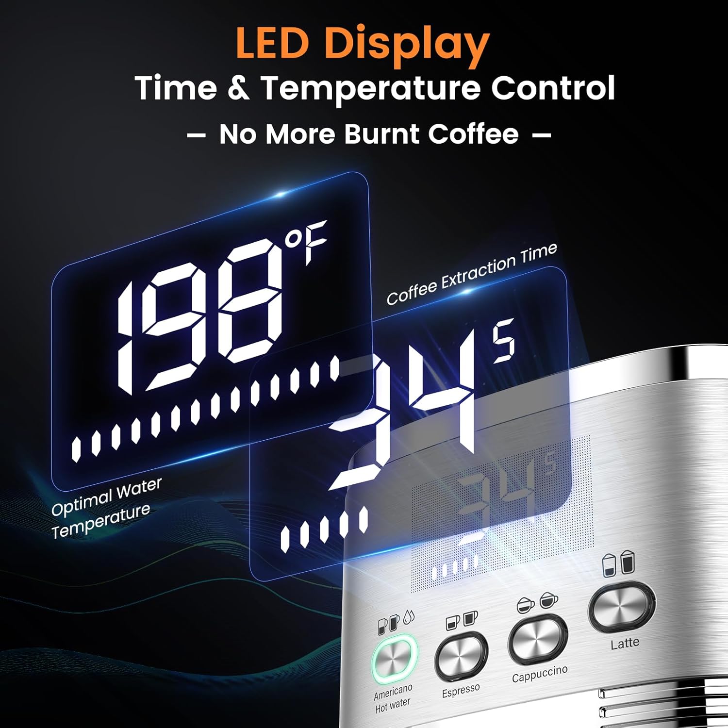 - Latte Machine with LED Display & ESE Pod Compatible: URintells Cuising expresso machines for home with the intuitive time and temperature display, which can clearly show the time of coffee extraction and water temperature brewing progress. 198℉ is the optimal temperature for coffee extraction. Our cappuccino machines for home with stainless steel single and double shot filters, ESE pod filter. ESE pod filter is easier to use and clean. Making coffee has never been easier with a americano coffee machine