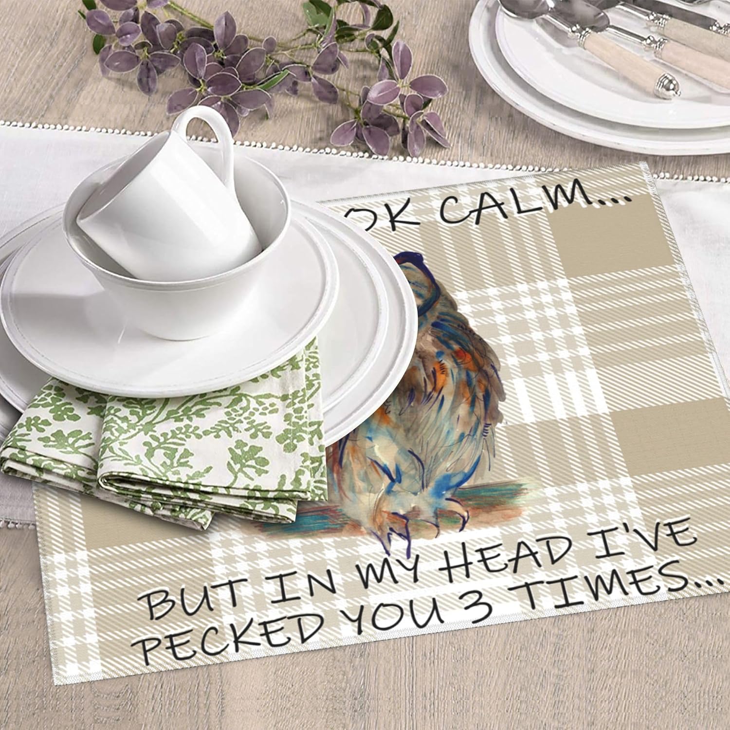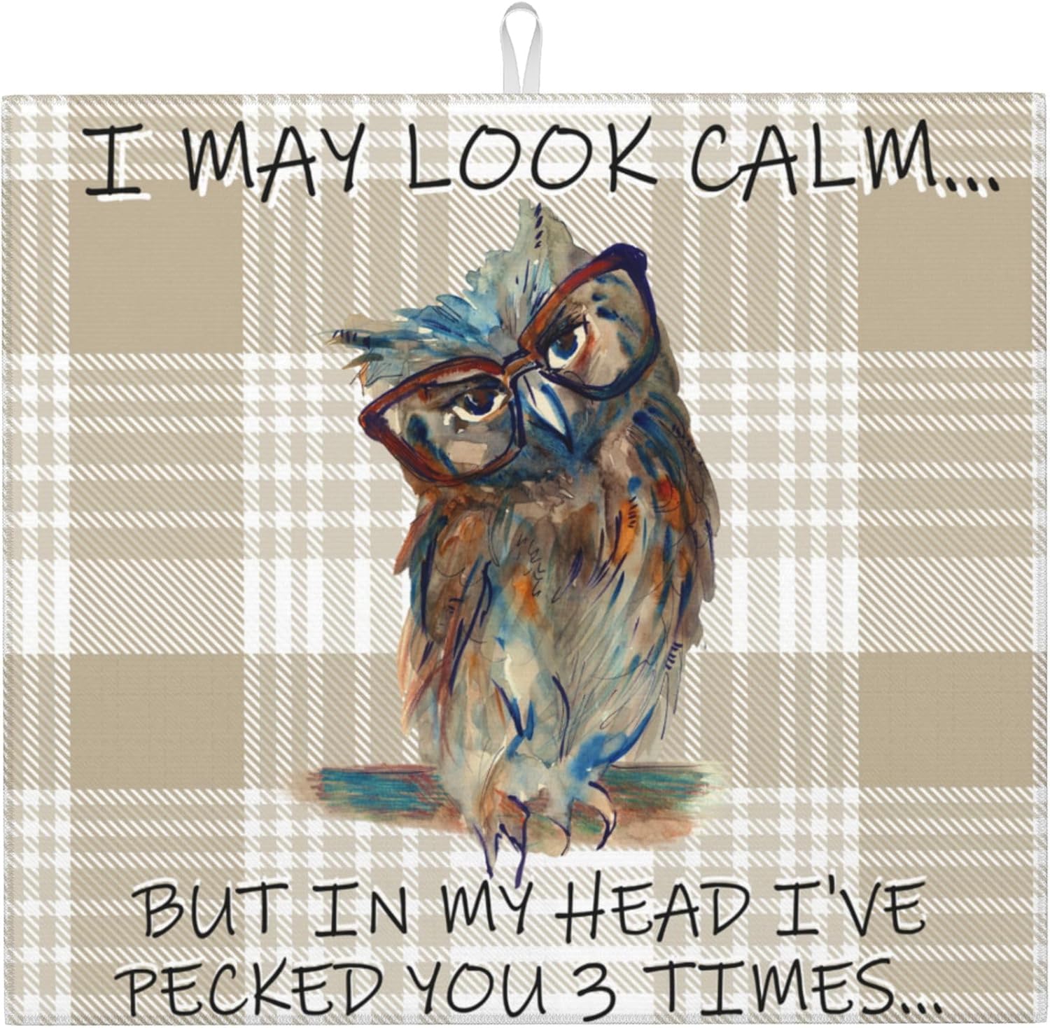 Funny Owl Dish Drying Mat for Kitchen Counter Cute Buffalo Plaid Drying Mat Washable Absorbent Reversible Microfiber Drying Pad Kitchen Accessories 16"x18"