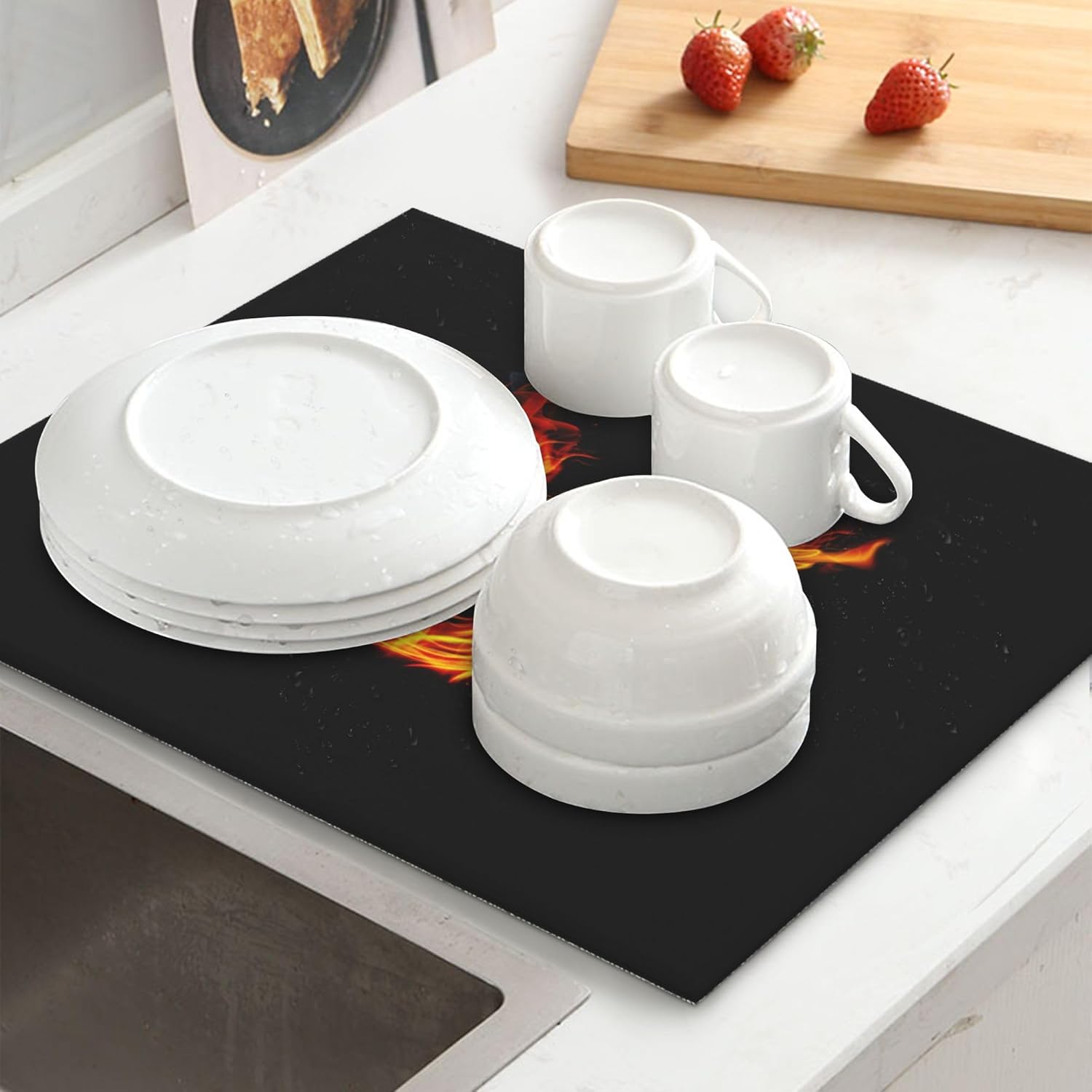 Fire Phoenix Dish Drying Mat for Kitchen Counter Washable Absorbent Reversible Microfiber Funny Drying Pad Kitchen Accessories 16x18 Inch