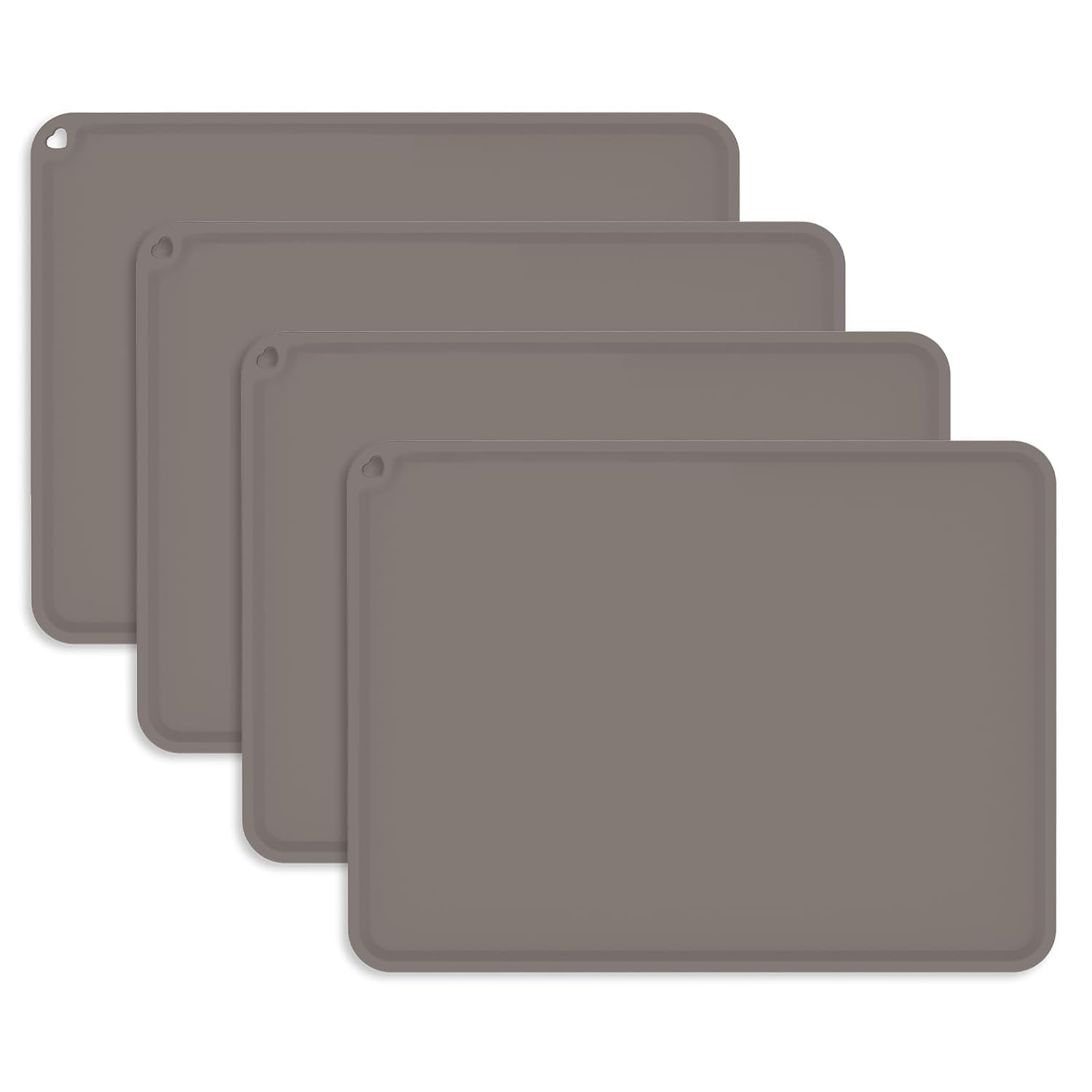 Kids Silicone Placemat, KVK Baby Placemats for Kids Toddler Children Reusable Non-Slip Table Mats Baby Food Mats for Restaurant, 4 Pack, Gray