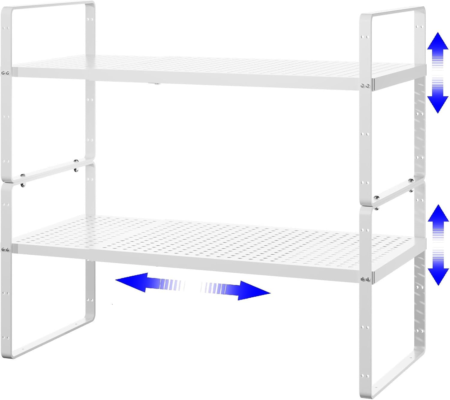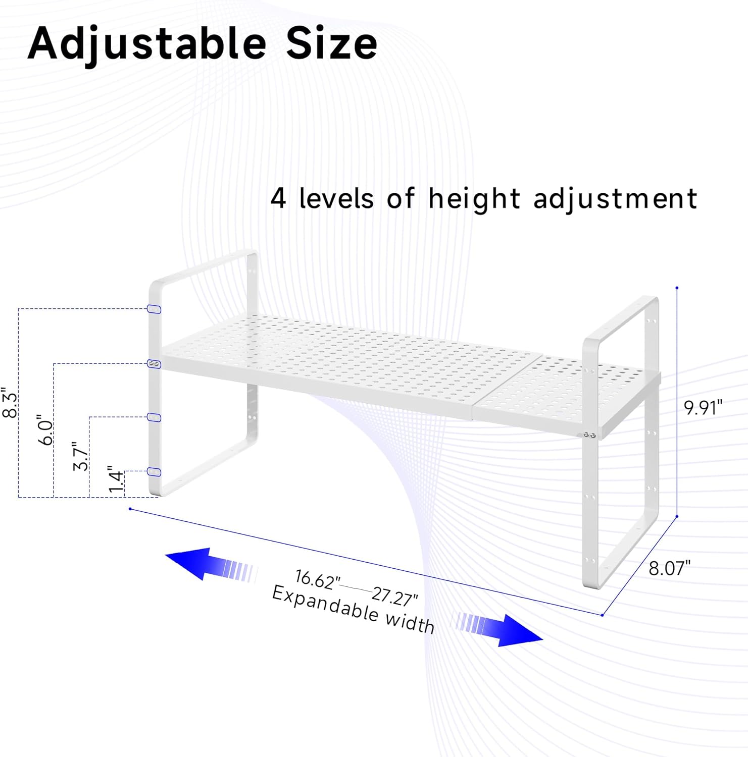Expandable Kitchen Shelf Organizers, Kitchen Cabinet Organizer Stand Rack Organization for Countertop Cupborad Pantry, White 2 Pack
