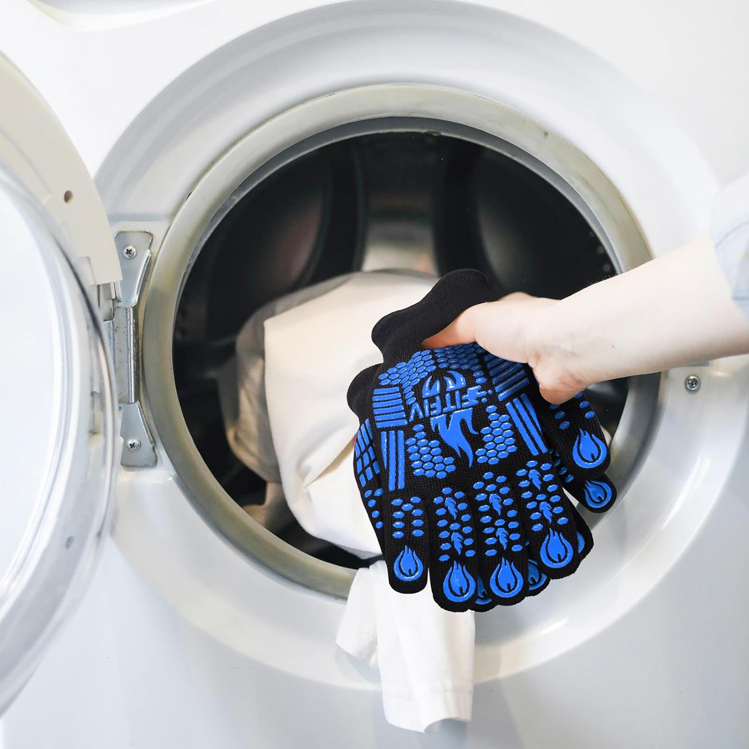 BBQ Gloves, Oven Gloves, 1472°F Extreme Heat Resistant Barbecue Gloves, Silicone Non-Slip Oven Mitts, Kitchen for Cooking, Grilling, and Baking (Blue)
