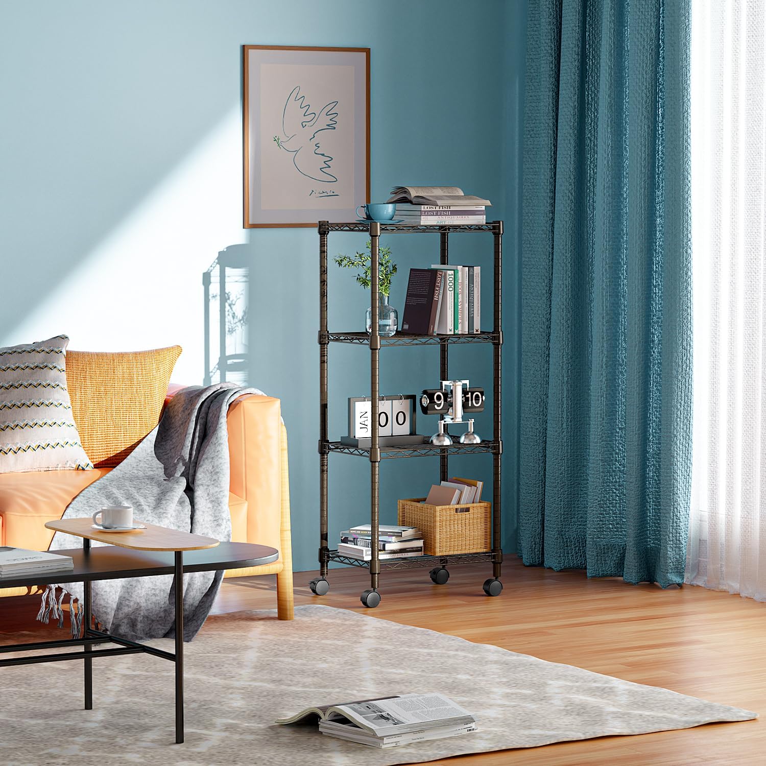 1000 lbs 4-Shelf Adjustable Heavy Duty Steel Wire Rack, Adjustable Storage Shelving Unit with Wheel for Kitchen, Garage, Laundry Brown 11.8" D x 17.7" W x 40.8" H