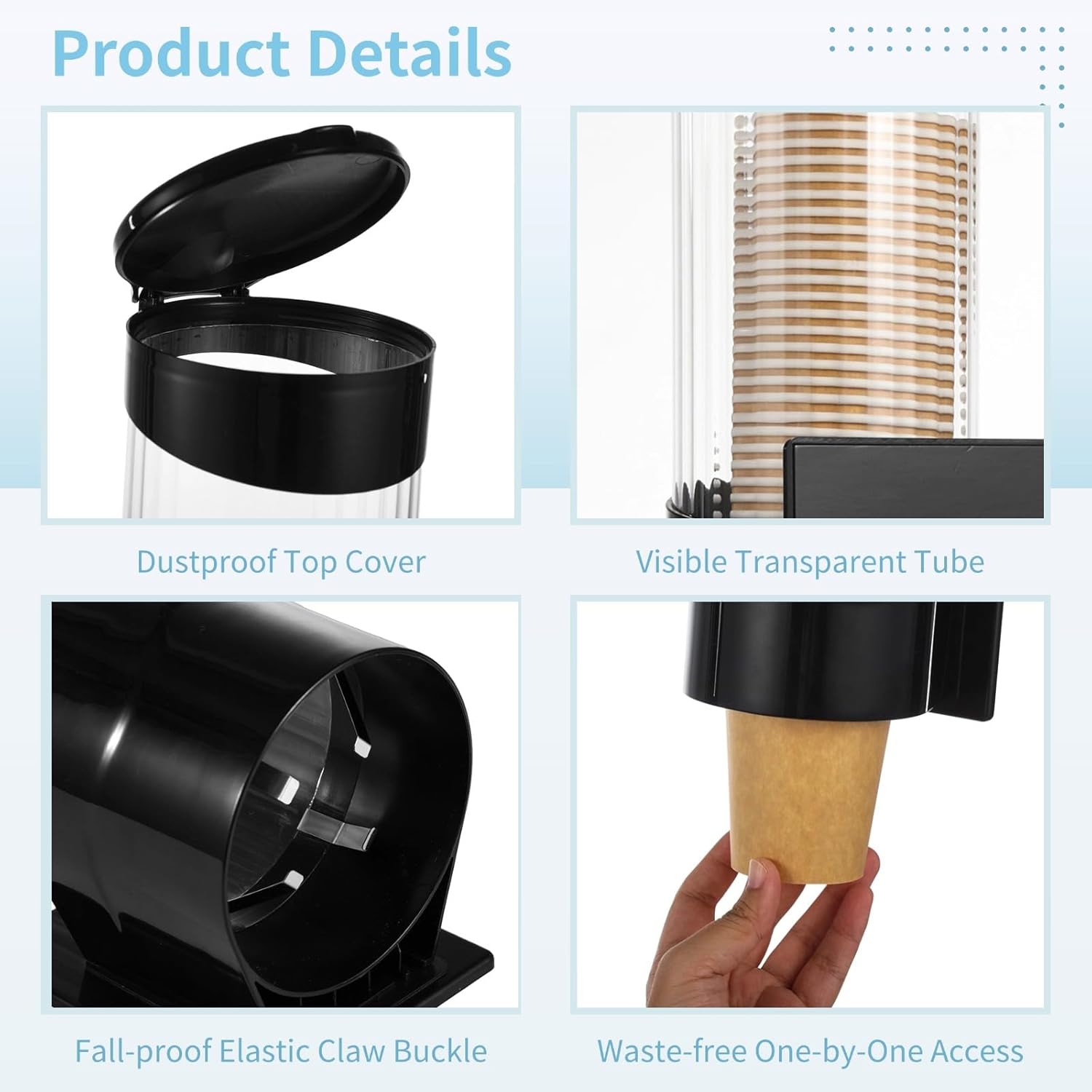 - Efficient Cup Management: You simply open the top cover of the cup dispenser and insert paper cups in for storage; there is an elastic claw buckle at the outlet, allowing you to take out the cups one by one, effectively reducing waste and mess