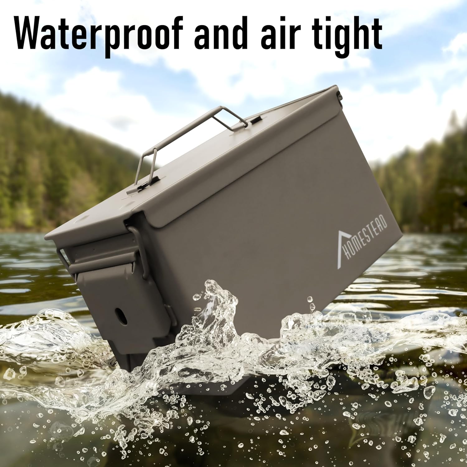 HOMESTEAD 50 Cal Metal Ammo Can – 4 Pack M2A1 Military Steel Ammo Storage Box, Airtight and Water-Resistant Ammunition, Dark Brown Color