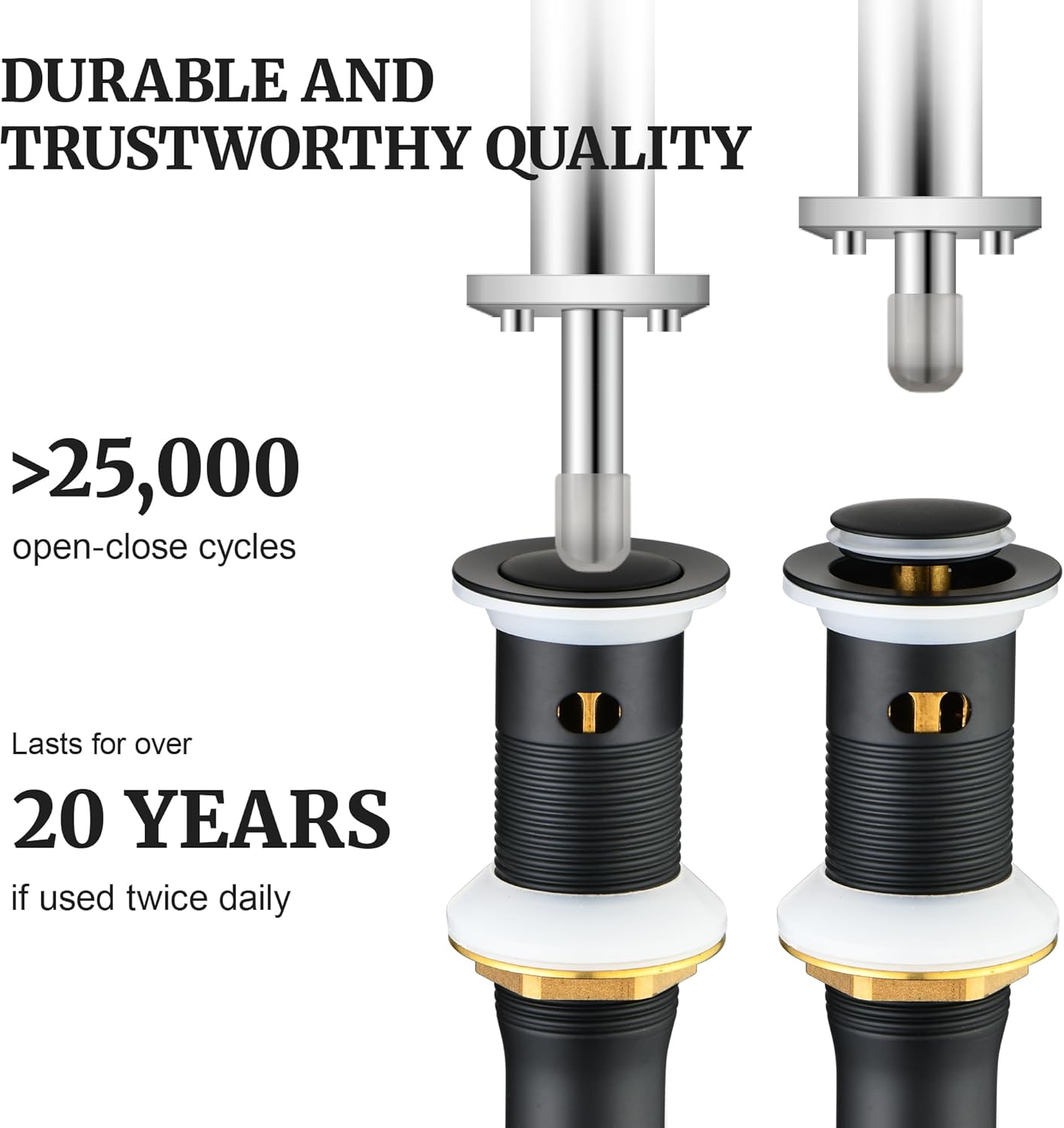 - SIZE: It fits standard US bathroom sink with 1 1/2 inch to 1 31/32 inch drain hole (1.5"-1.96")