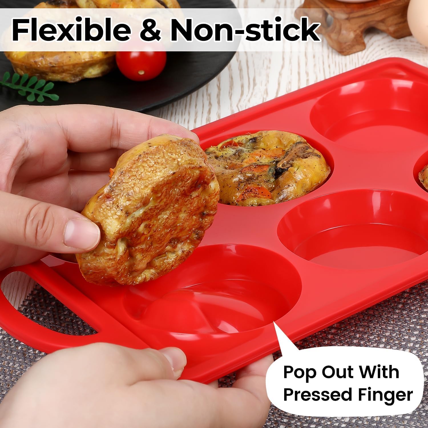 - Food Grade Silicone Egg Molds: 100% food grade silicone, Each Cup diameter top: 3 inch, cup depth: 0.65 inch. No more spilling after batter fill in with when transfer muffin top pan from counter to oven