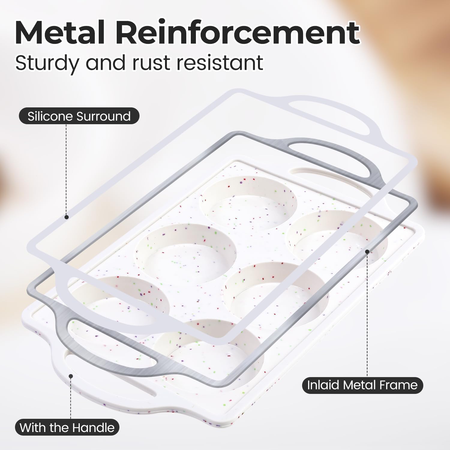Muffin Top Pan Non Stick, Silicone Egg Molds for Breakfast Sandwiches 3 Inch Round Egg Baking Pan for Oven English Muffins, Whoopie Pies, Corn Bread, Tarts 2 Pack Confetti