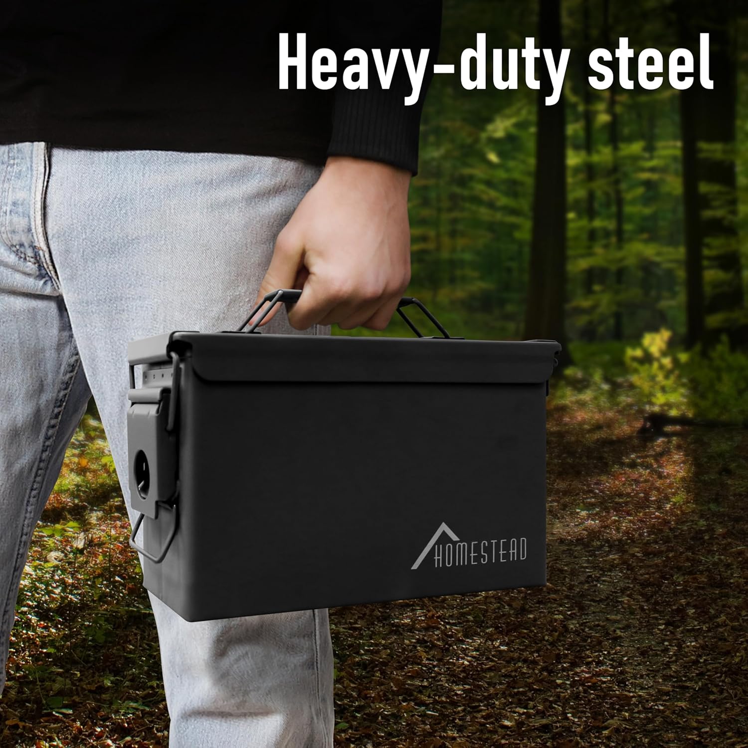 HOMESTEAD 30 Cal Metal Ammo Can - New Steel Ammo Can, Military Ammo Box, Airtight Case, Weatherproof Storage Ammo Box (4-Pack, Black Color)