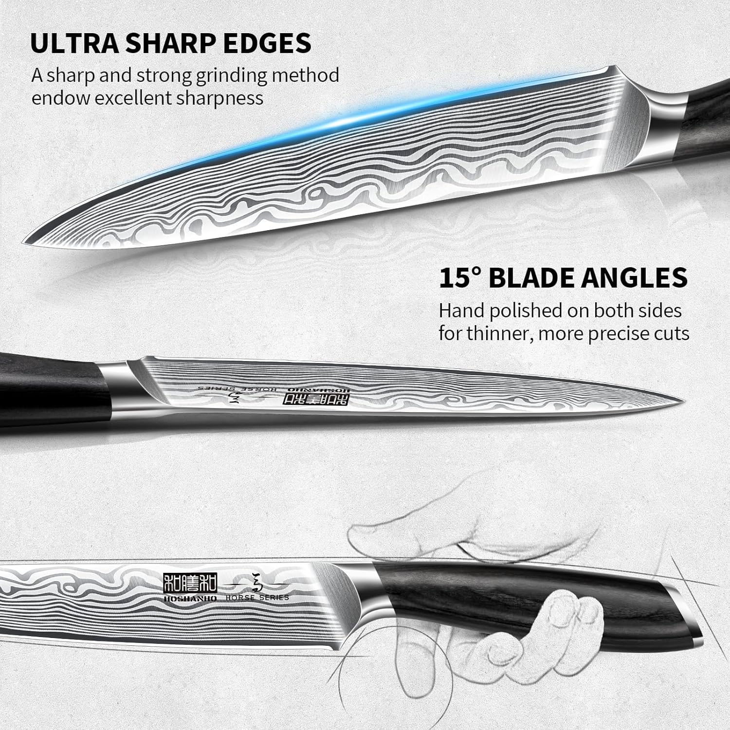 HOSHANHO 5 Pieces Knife Set, Professional Powder Steel Chef Knife Set, Ultra Sharp Japanese Kitchen Knives Set with Ergonomic Pakkawood Handle