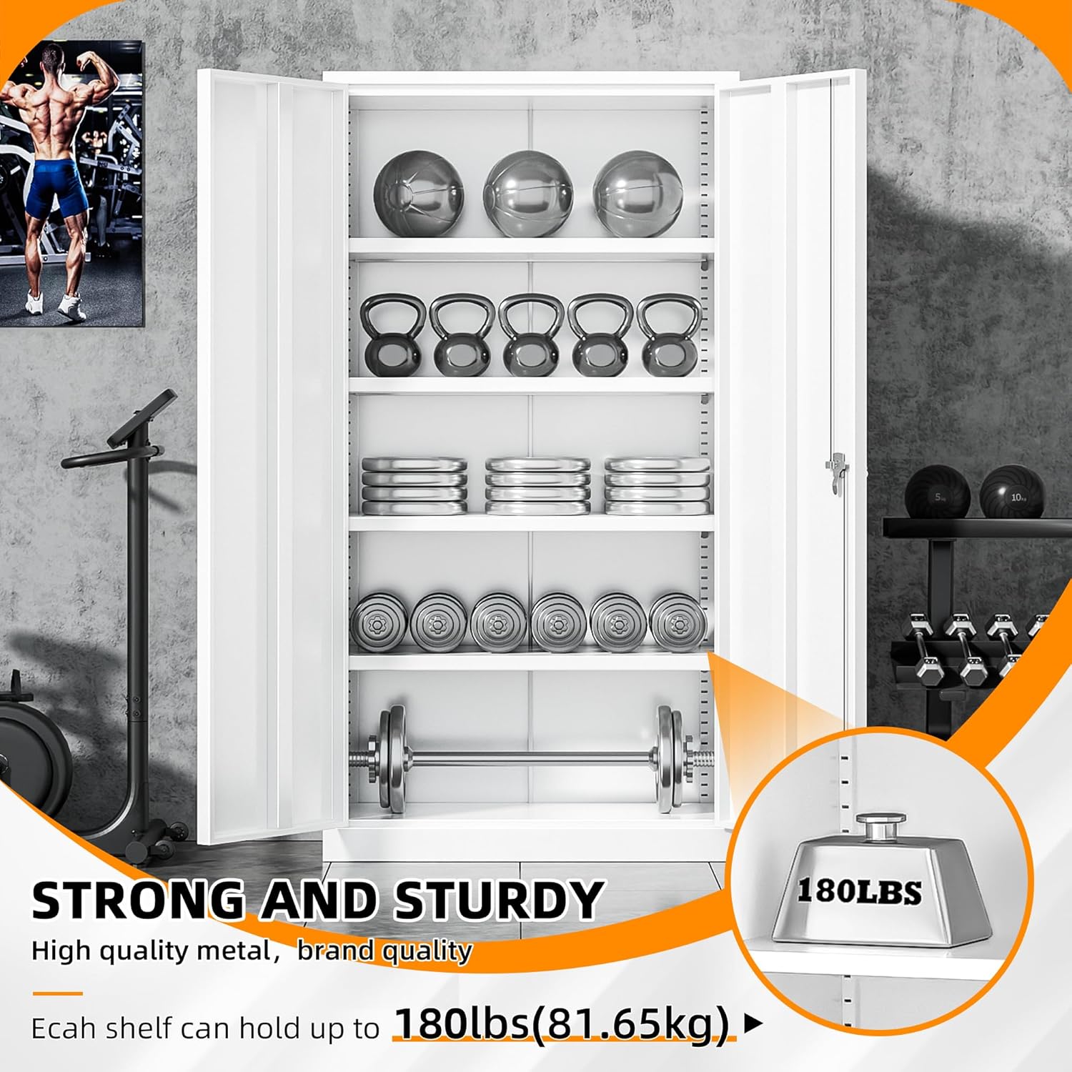 - 【Multipurpose large cabinet】Intergreat lockable classroom organization cabinet with 2 locking doors and 4 adjustable shelves, can move the shelves up or down according to your need, each layer can bear 150 pounds, suitable for storing office documents and tools, as well as heavy items. Durable white metal cabinets are an ideal choice for home office, utility room, laundry, kitchen, garage, school, shop, warehouse, business etc.