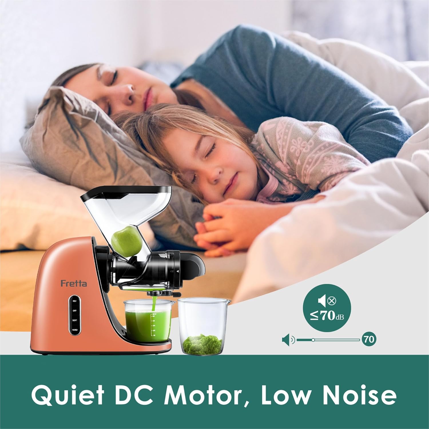 - 【Efficient and Quiet 200W Motor】The Fretta juicer is equipped with a powerful 200-watt DC noise-reduced motor, providing strong and efficient performance for faster juicing while keeping noise levels to a minimum.