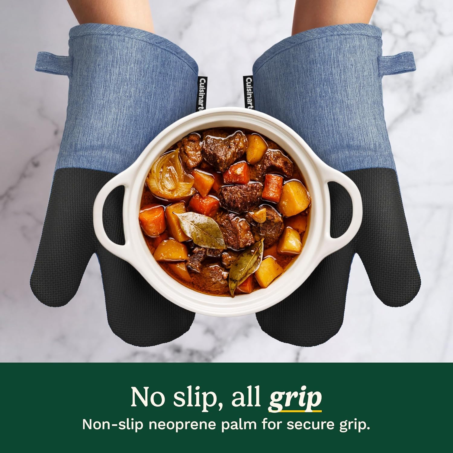 Cuisinart Kitchen Oven Mitts – Heat-Resistant Kitchen Mitts for Oven with Non-Slip Neoprene Palm, Long Cuff, and Cotton Filling – Durable Oven Gloves for Cooking, Baking, & Grilling (Chambray)
