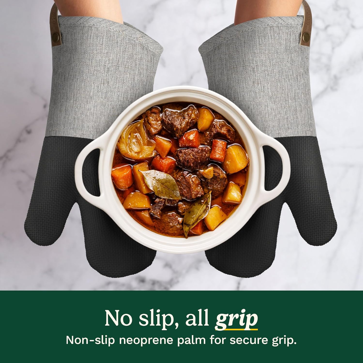 Cuisinart Heritage Kitchen Oven Mitts – Heat-Resistant Kitchen Mitts for Oven with Non-Slip Neoprene Palm, Long Cuff, and Cotton Filling – Durable Oven Gloves (Textured Gray)