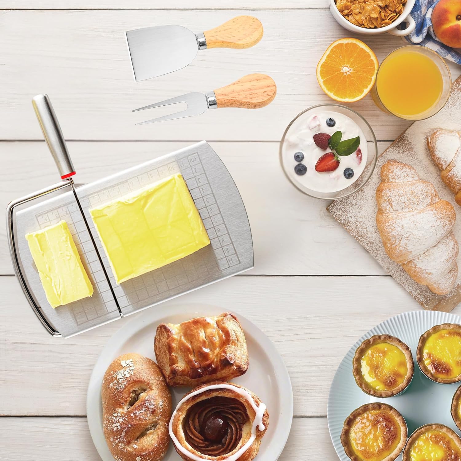 Cheese Slicer with 2 PCS Cheese Knife, Multipurpose Cheese Cutter Stainless Steel Cheese Slicers for Block Cheese with 2 PCS Cheese Knives Set