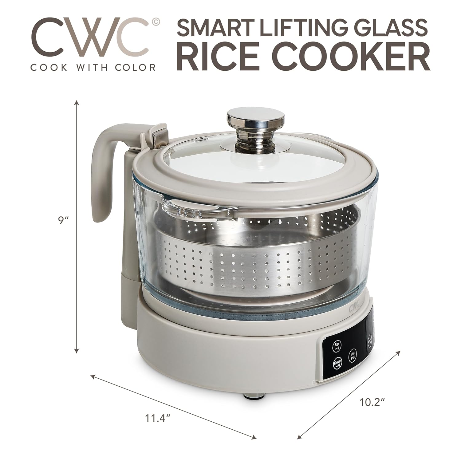 COOK WITH COLOR 3L Glass Low Carb Rice Cooker - Makes 6 Cups Cooked Low Sugar Rice with Auto Lift Filter Basket, Hotpot & Steamer for Rice, Grains and Oats, Digital Panel with Keep Warm, Sand