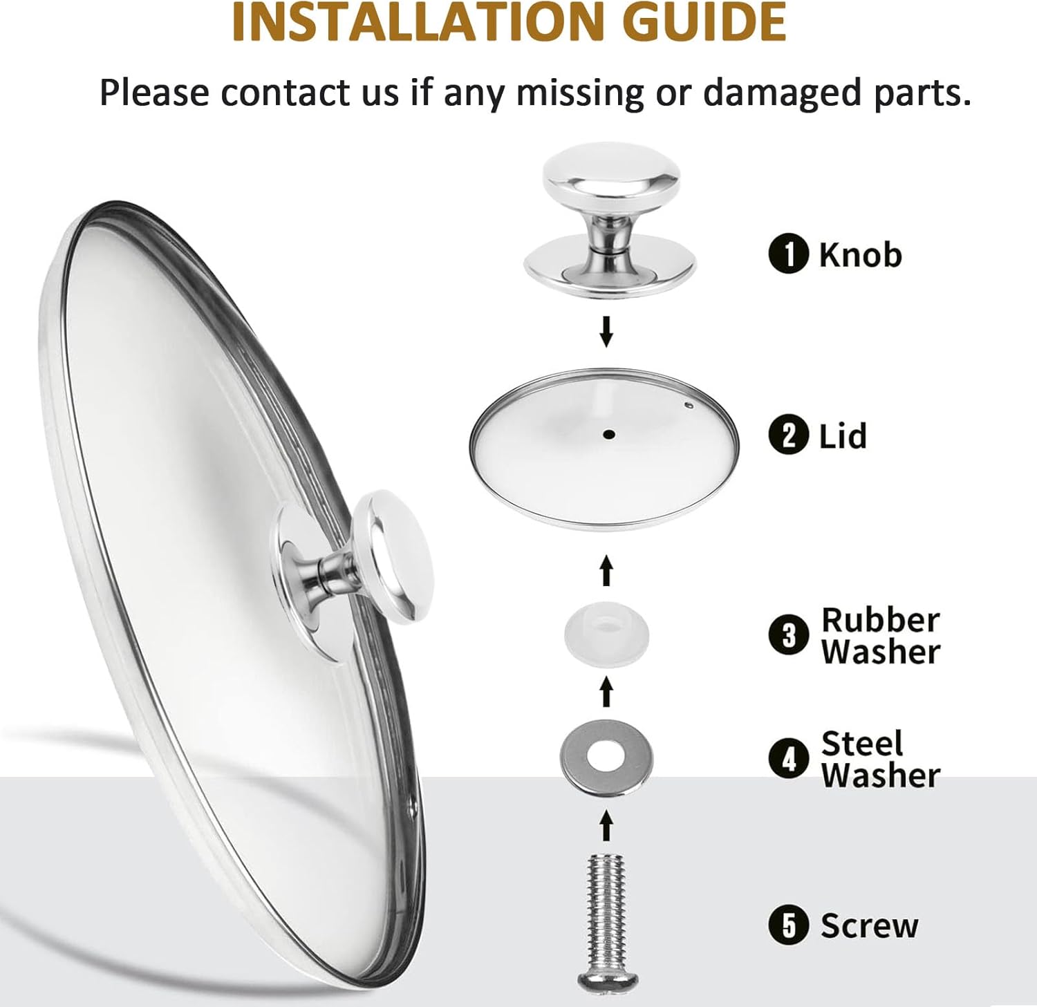 - TEMPERED GLASS & STAINLESS STEEL RIM – The glass lids are made of tempered glass,strong and durable. The edge of the lid is made with stainless steel material, make sure the safe cooking without rust (Please contact us if any broken during shipping)