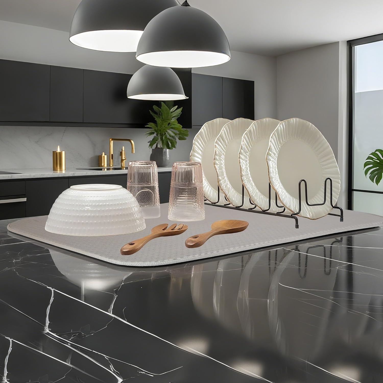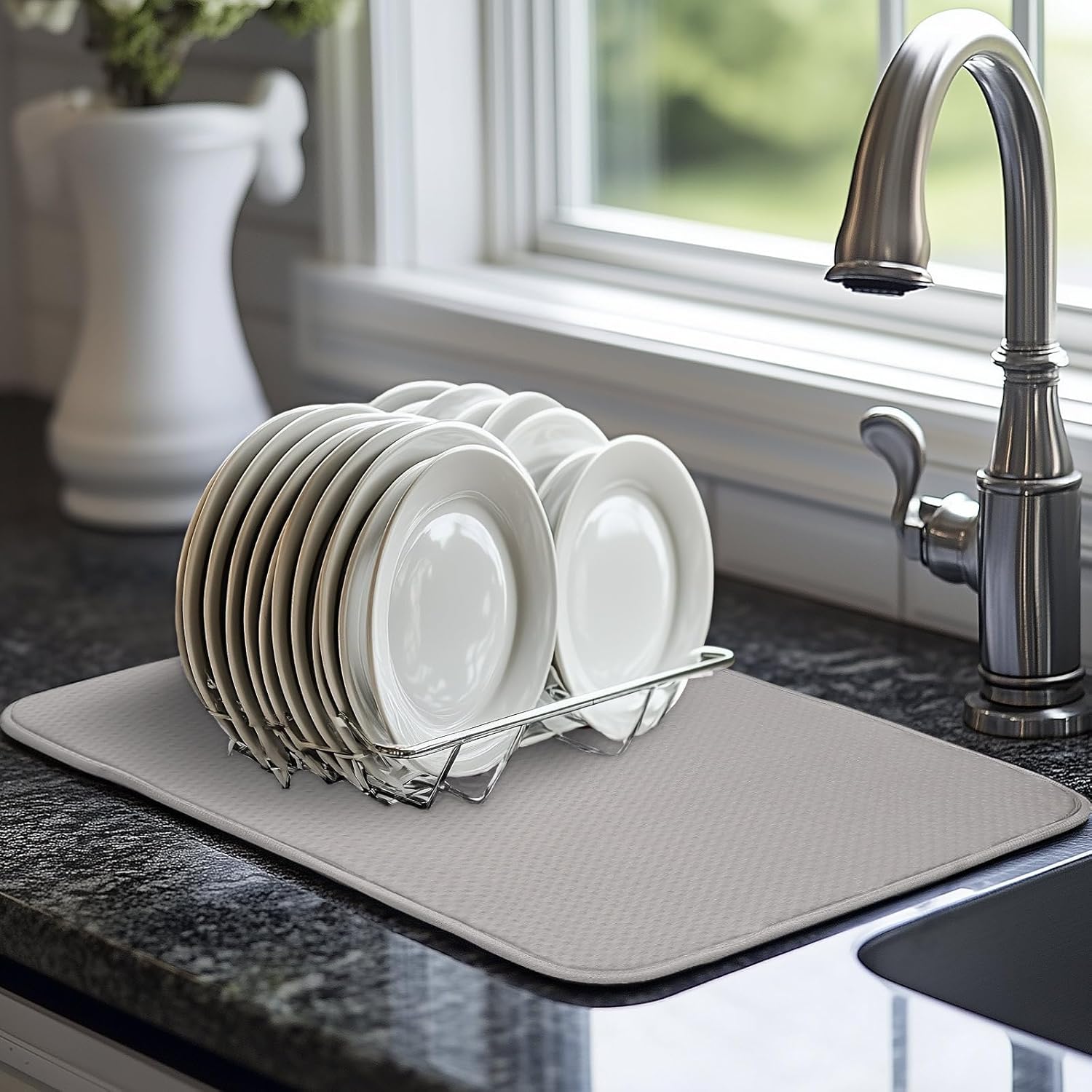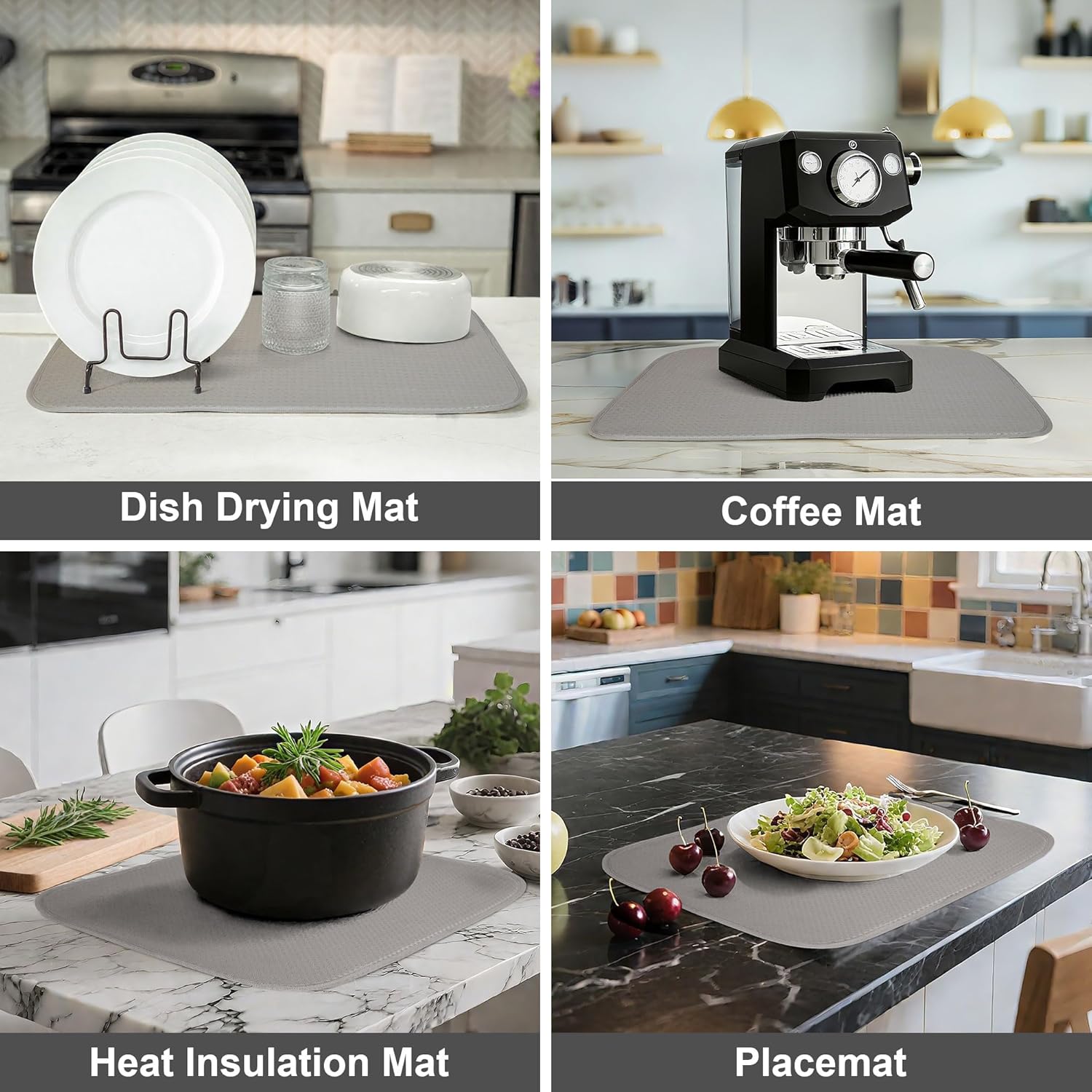 Dish Dryer Mat, Dish Drying Mats For Kitchen Counter, Large Dish Drying Pad for Kitchen Counter, Microfiber Dish Drying Mat for Sinks, Drainer Mats, 20 x 15 inches (Gray)