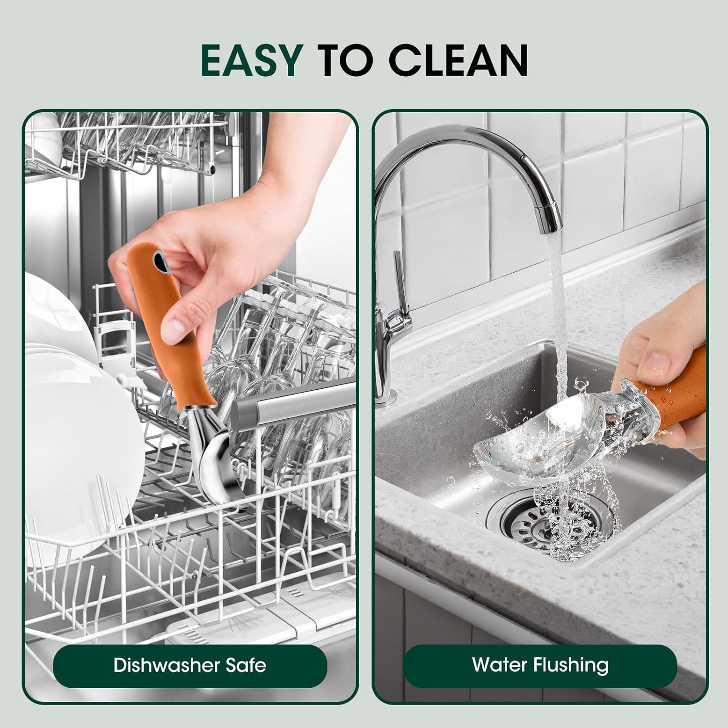 - Effort-Saving Extended Handle: Designed with a lengthened handle and an ergonomic concave arc for enhanced finger stability, this ice cream scoop ensures a stable grip while reducing wrist strain. The soft rubber-wrapped handle provides a comfortable, anti-slip hold for effortless use