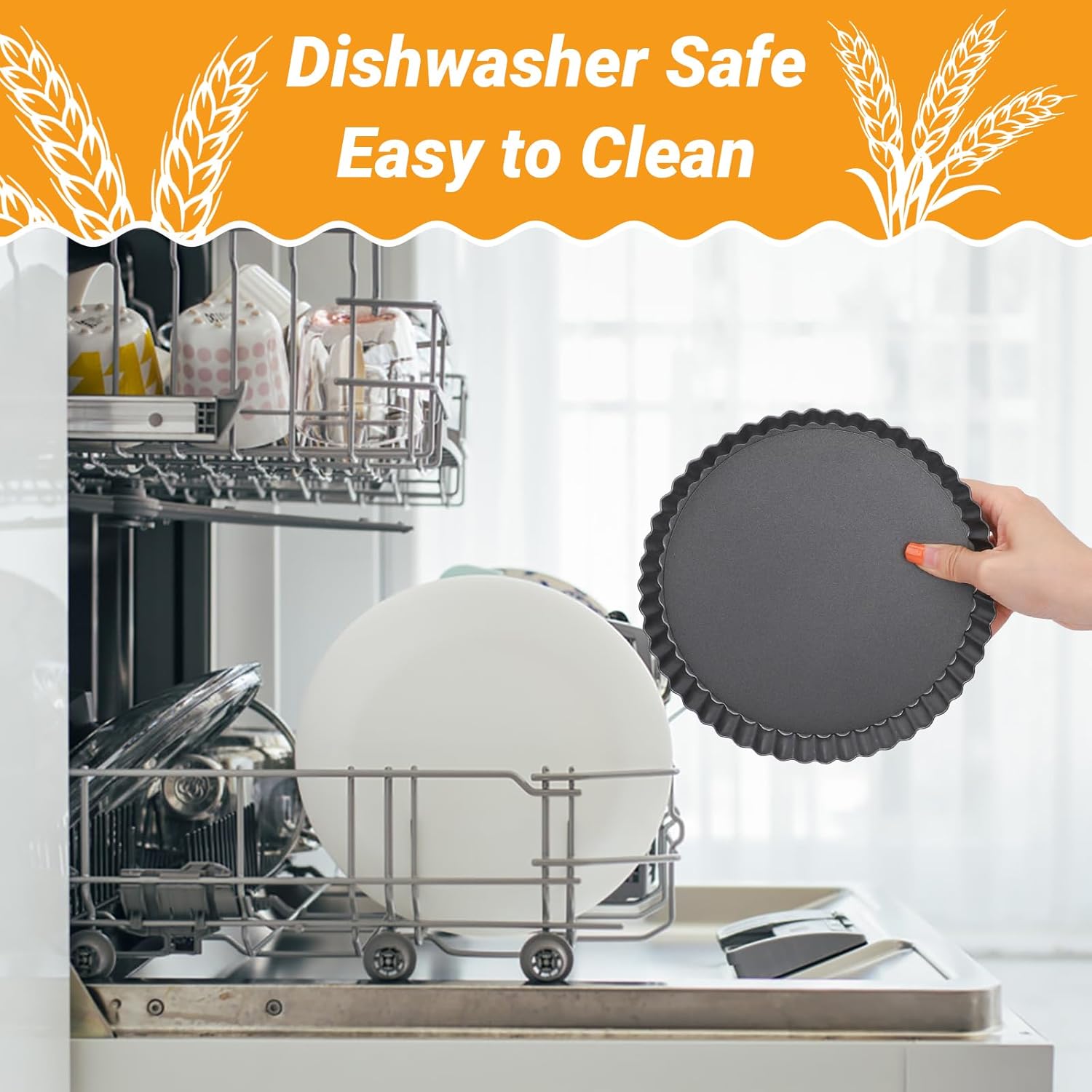 - Effective Non-stick Coating --- The pie pan is equipped with a premium non-stick coating that minimizes food and grease adhesion. This helps maintain the appearance of your baked goods while making cleanup a breeze. For optimal non-stick performance, applying a light coat of cooking oil or spray to the pan before use is recommended.