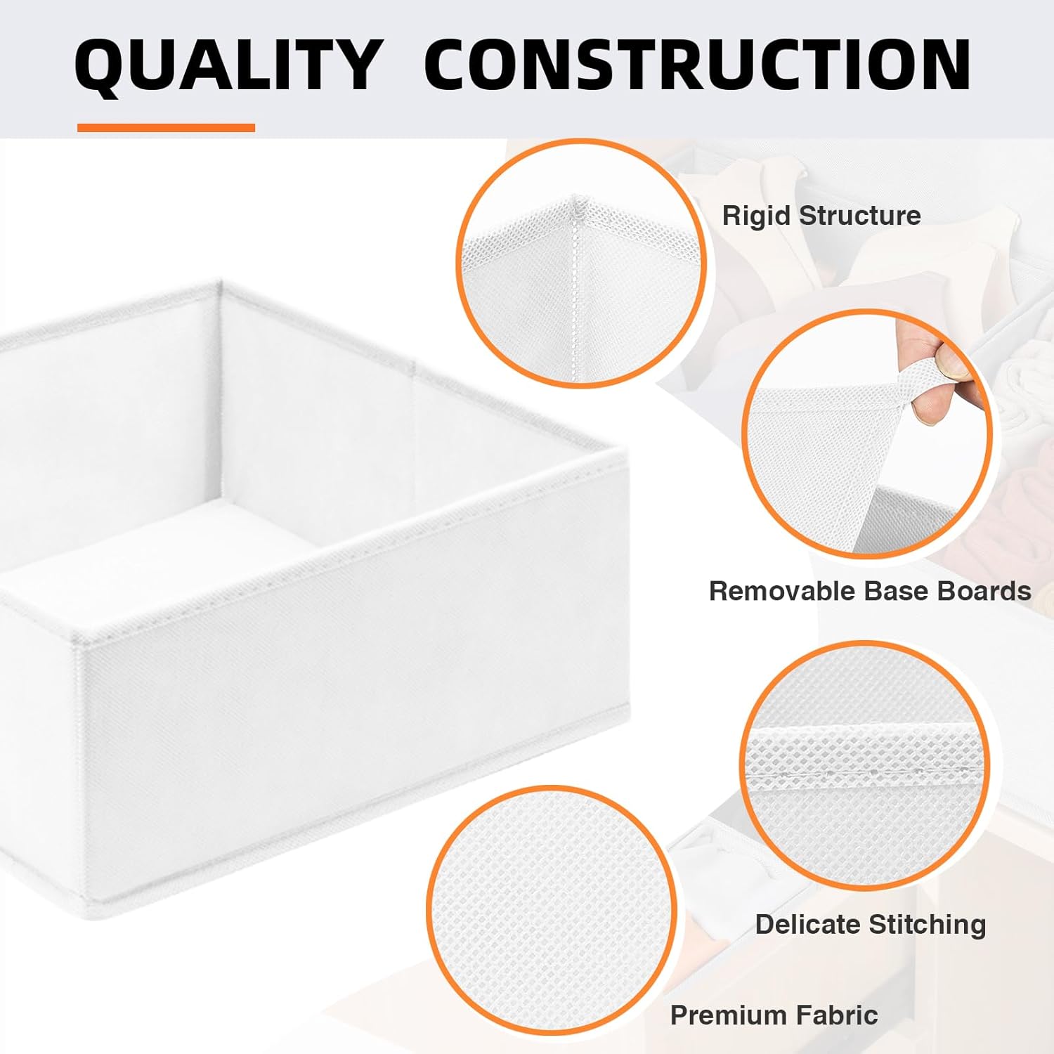 - 【QUALITY STRUCTURE】These dresser drawer organizers feature robust non-woven fabric and expert stitching for extra durability. Enhanced with sturdy boards on the sides and bottom, these organizer bins stay rigid for years. Odorless and perfect for nursery baby clothes storage.