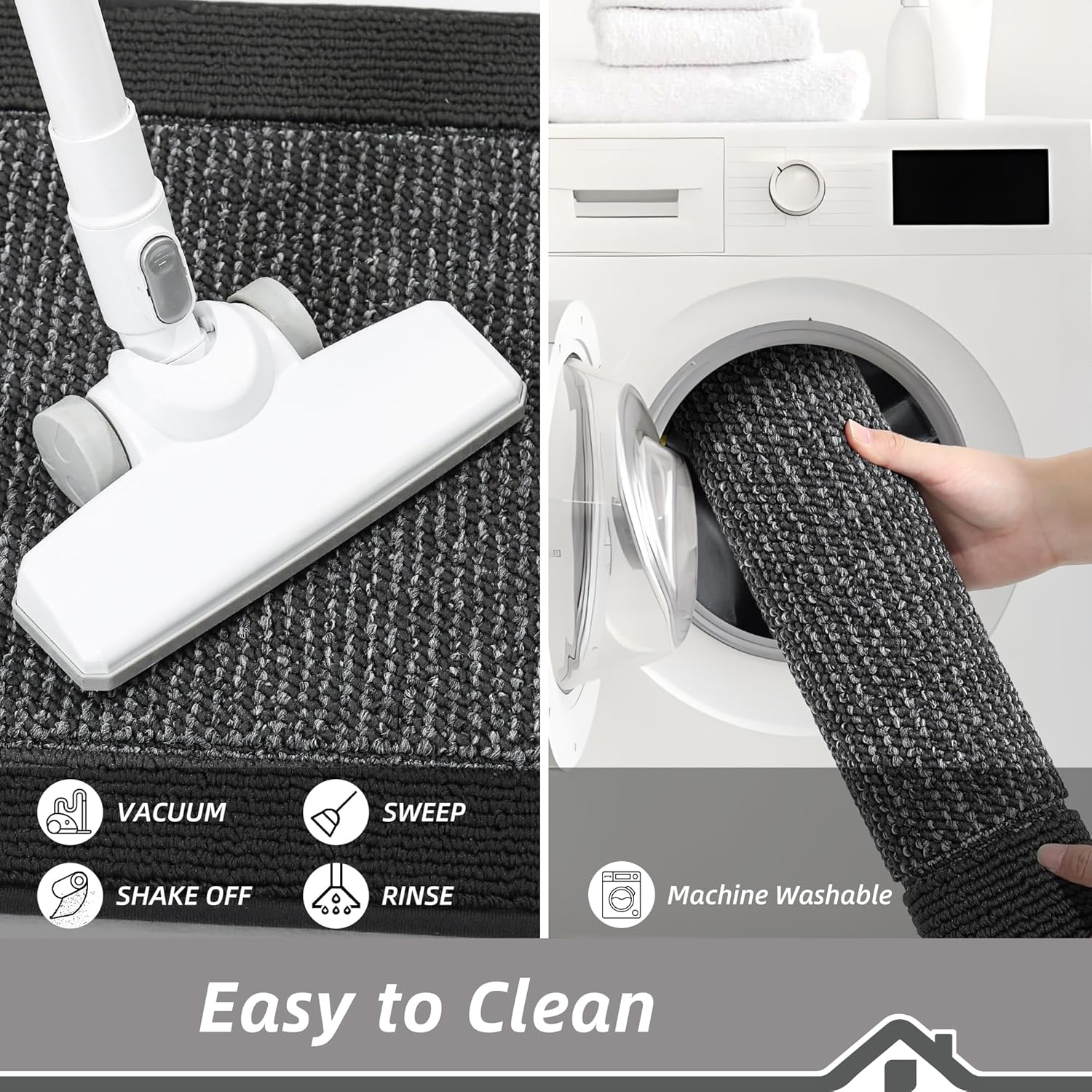 BEQHAUSE Kitchen Rugs and Mats Set of 2 Non-Slip Kitchen Mats for Floor, Absorbent and Stain Resistant Kitchen Runner, Machine Washable Rugs for Kitchen, Laundry & Sink, 24"x36"+24"x60", Charcoal