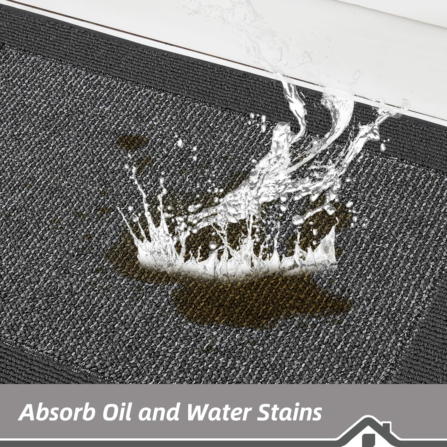 - Extra Absorbent & Protection: Our kitchen rugs and mats are made of premium Polypropylene fibers and extremely dense yarns, which can effectively absorb spilled oil and water, protect your floor from oil, moisture, sauces or food particles, keeping your kitchen clean and tidy. The soft surface of kitchen rugs can also protect the floor from your beloved tableware breaking or damaging the floor