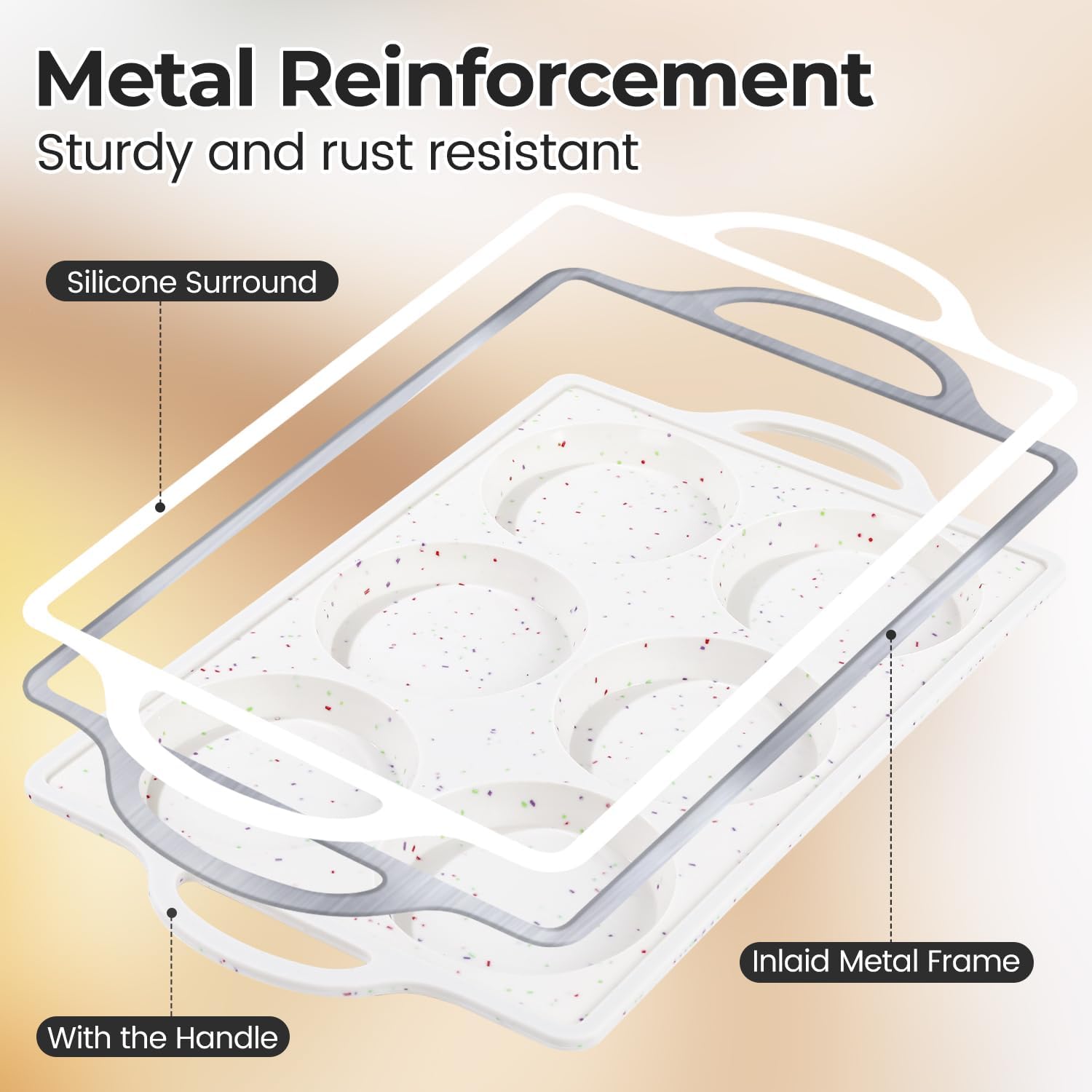 - Metal Reinforced Silicone Muffin Top Pan: The hidden stainless steel frame around the outer edge makes whoopie pie pan more sturdy