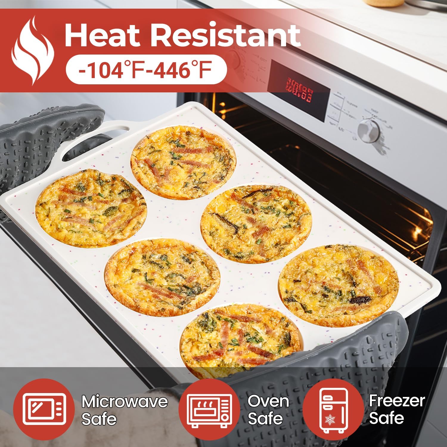 - Safety & Healthy: Safe for oven, microwave, dishwasher, fridge, freezer. Wide heat resistant range: -104 to 446 degrees Fahrenheit, these muffin top pans are impermeable, practicality and durability