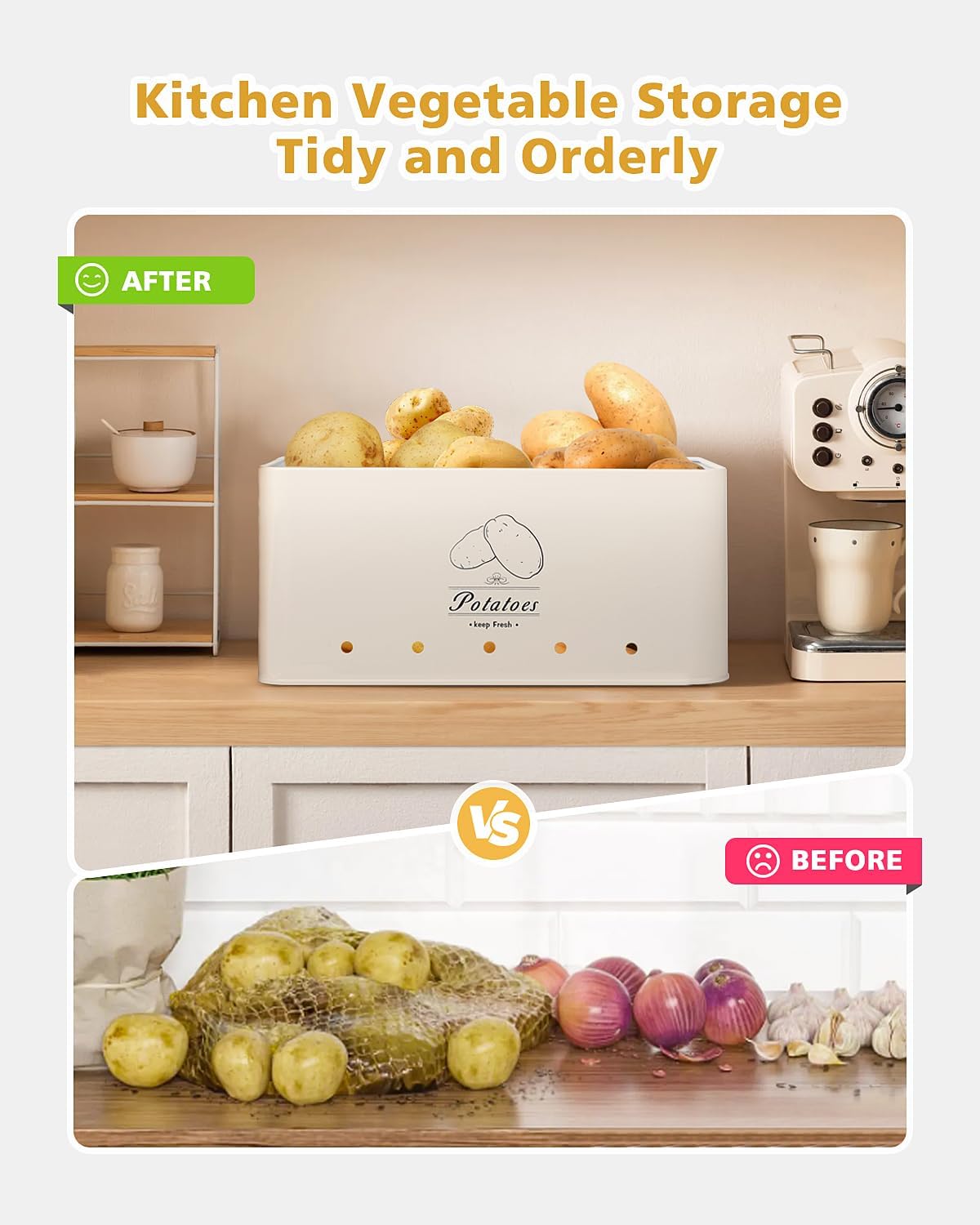 - 【Ventilation And Preservation】Specially Designed Vents in The Storage Bin Promote Air Circulation, Preventing Moisture Build-Up And Extending the Shelf Life of Your Potatoes and Onions, Keeping Them Fresher for Longer