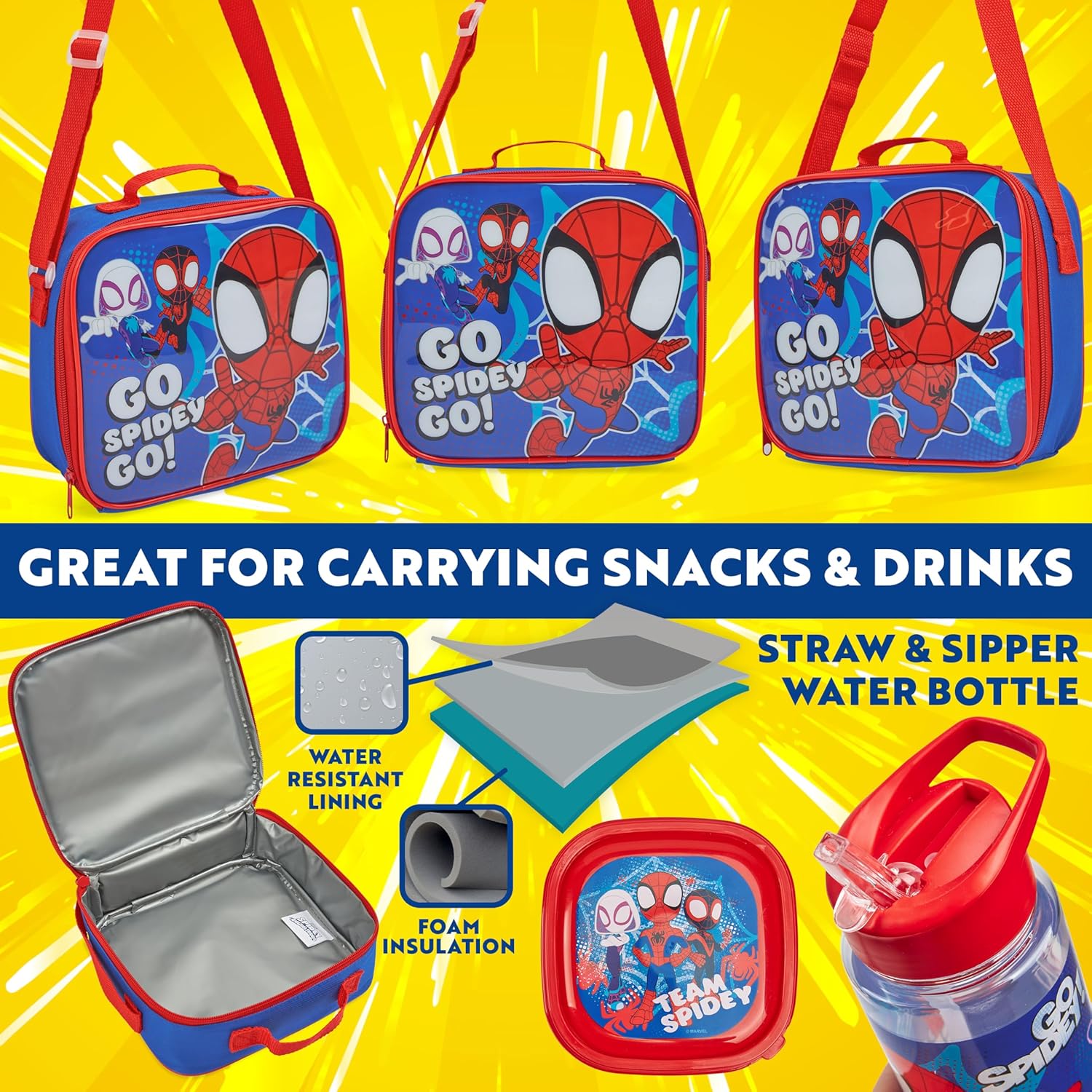 Get Trend Marvel Spidey Kids Lunch Bag Set 3 Pc with Leak Proof Water Bottle and Small Lunch Box Insulated for School Daycare or Travel (Spidey)