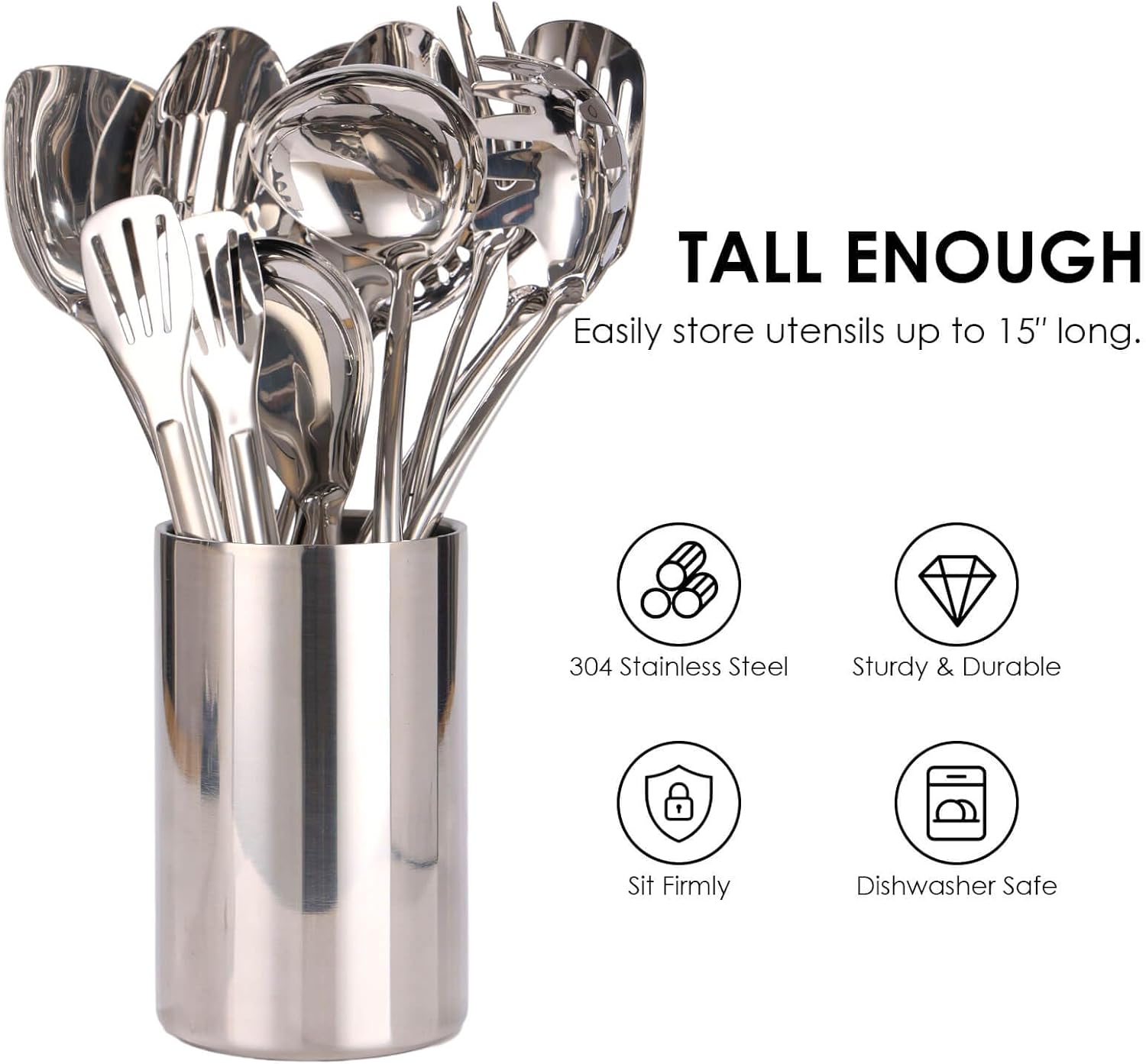 Double Wall Utensil Holder - 304 Stainless Steel Sleek Kitchen Utensil Holder for Countertop, Spatula Spoon Storage Organizer, Large Cooking Utensil Caddy Counter, Shining Utensil Crock, Mirror Polish