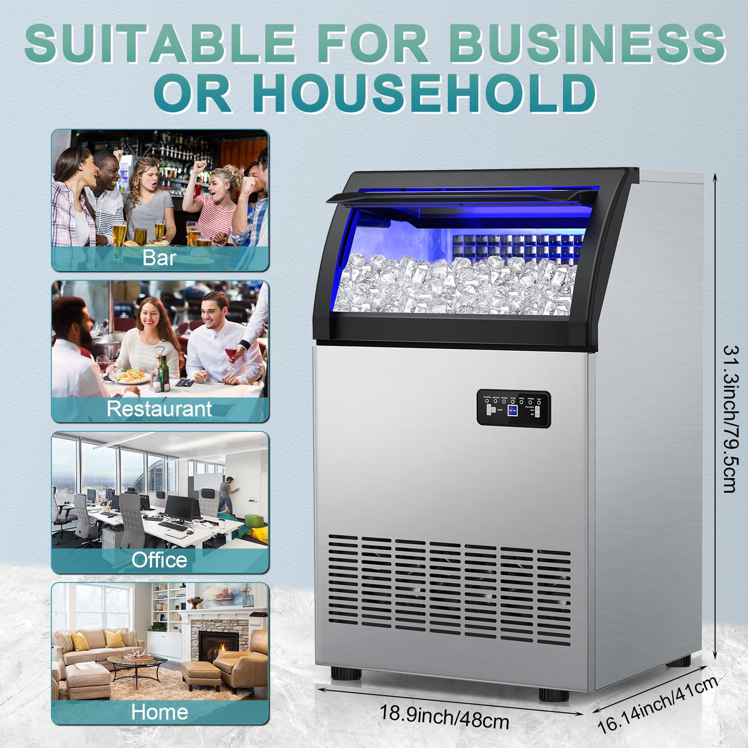 - ❄【High-quality Material】This commercial ice maker is made of durable stainless steel, heat insulation, and food-grade PP injection liner, Durable, healthy, and odor free! The white scratch-resistant film can effectively prevent scratches during transportation.