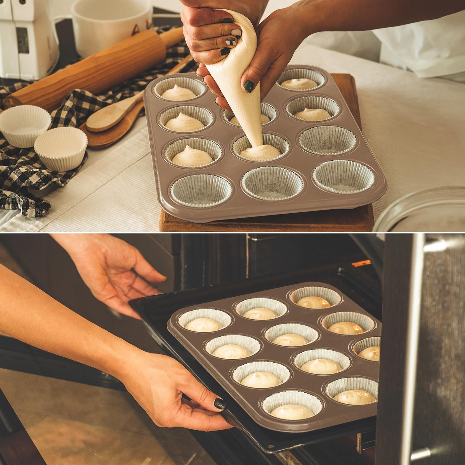 - COMMERCIAL-GRADE DURABILITY - Heavy-gauge carbon steel construction resists warping. Oven safe to 450°F for versatile baking from muffins to mini quiches.