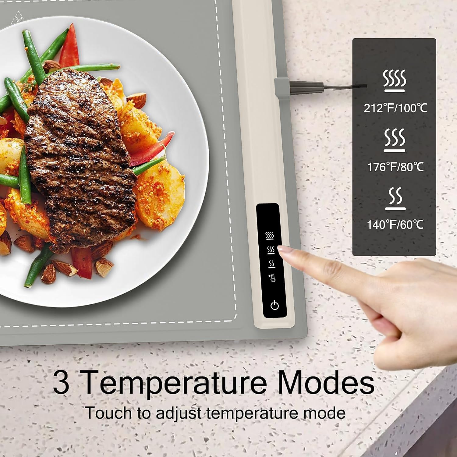 Electric Warming Tray with Adjustable Temperature-Portable Warming Mat for Food,Roll Up Silicone Food Warmer for Parties with 3 Temperature Settings,Versatile Food Warmers for Parties Buffet (Grey)