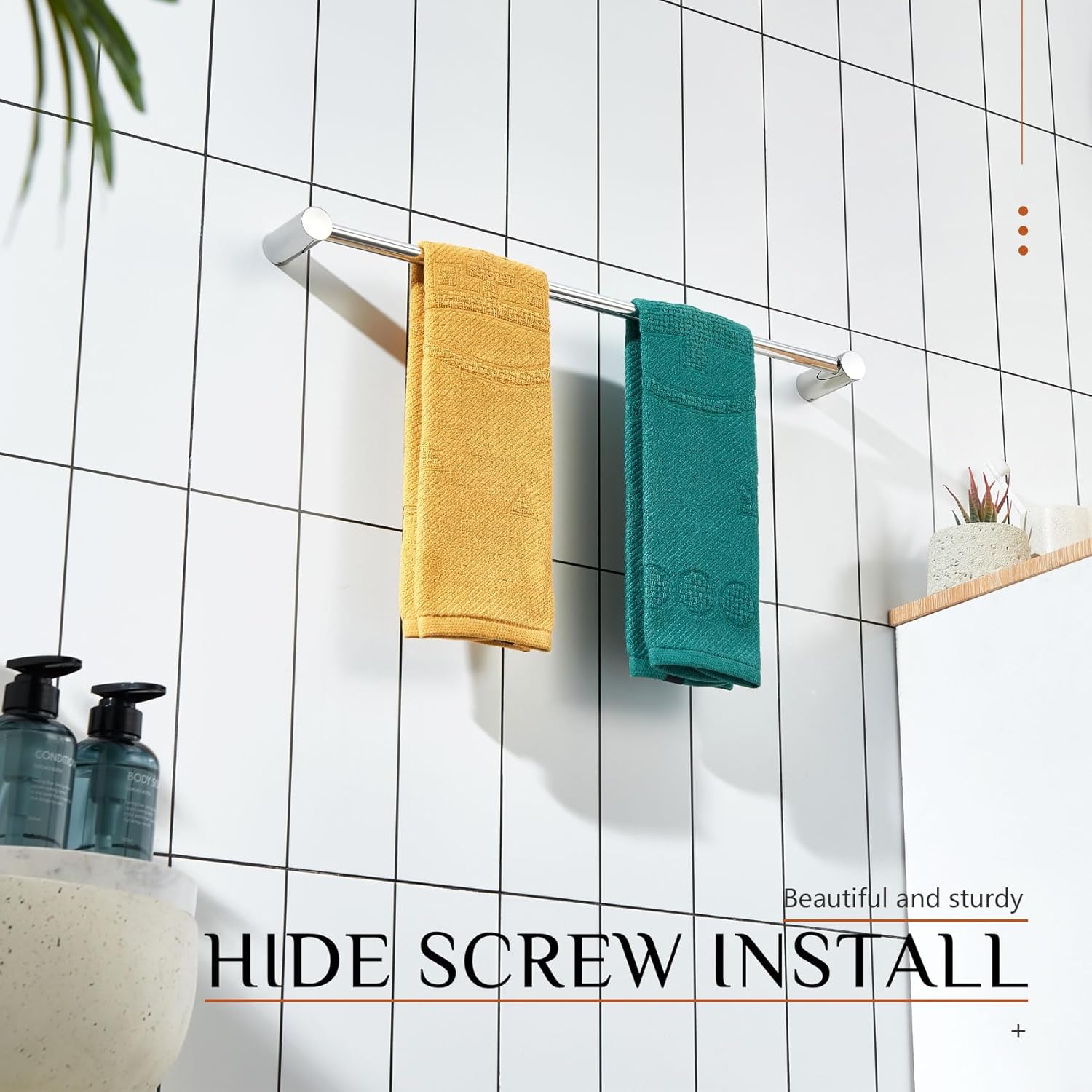 - ◄ POLISHED CHROME ► The bathroom towel holder is polishing as mirro-like finish which is bright and smooth. And the surface covering is resisting daily scratches, corrosion, and tarnishing
