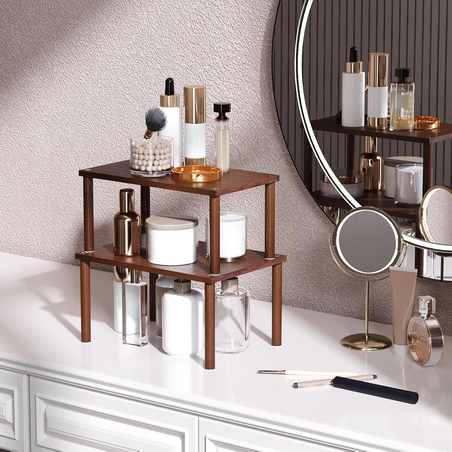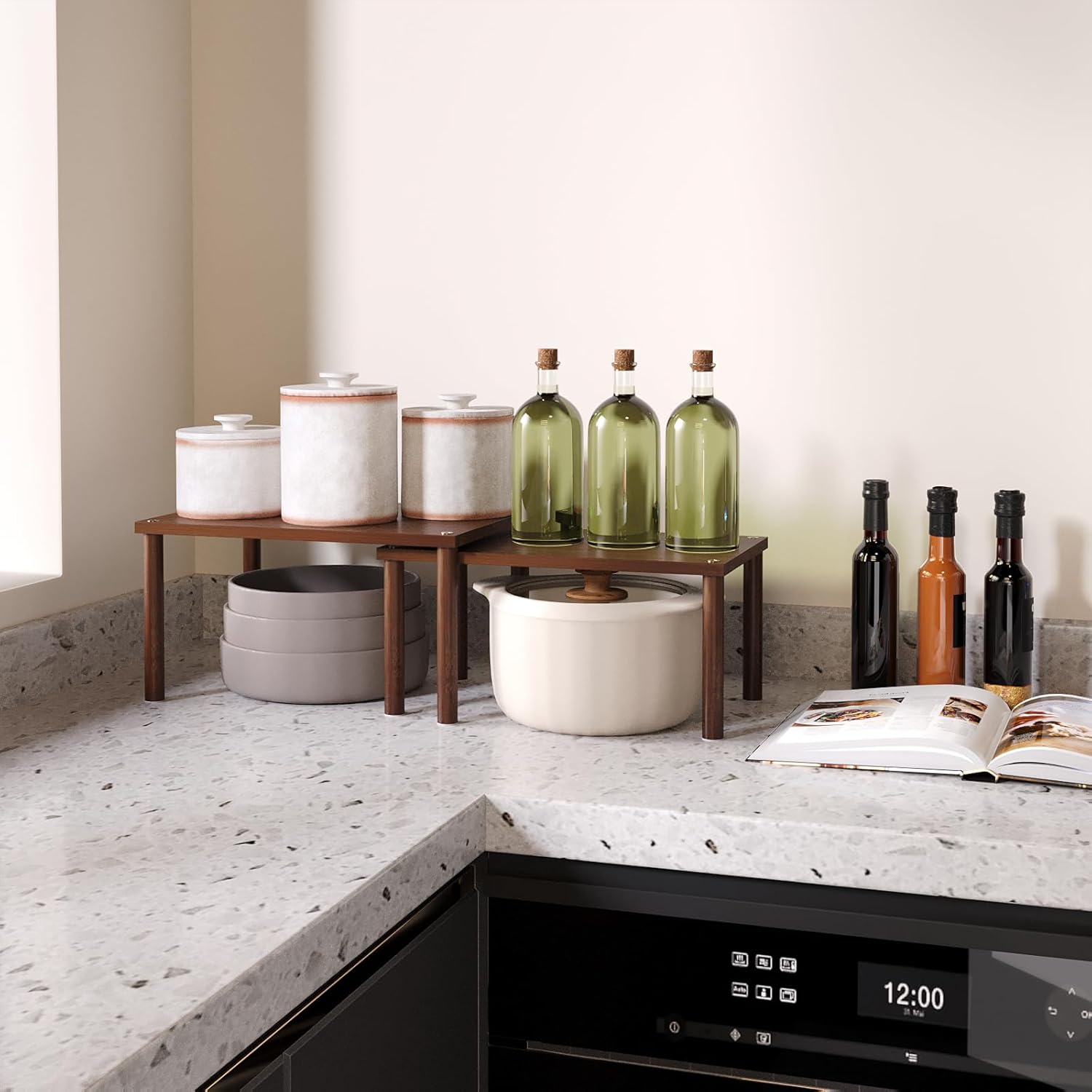 Cabinet Organizer Shelf(Set of 2),Kitchen Counter Shelves,Bamboo Spice Rack Countertop and Cabinet,Stackable Expandable,Medium(Brown)