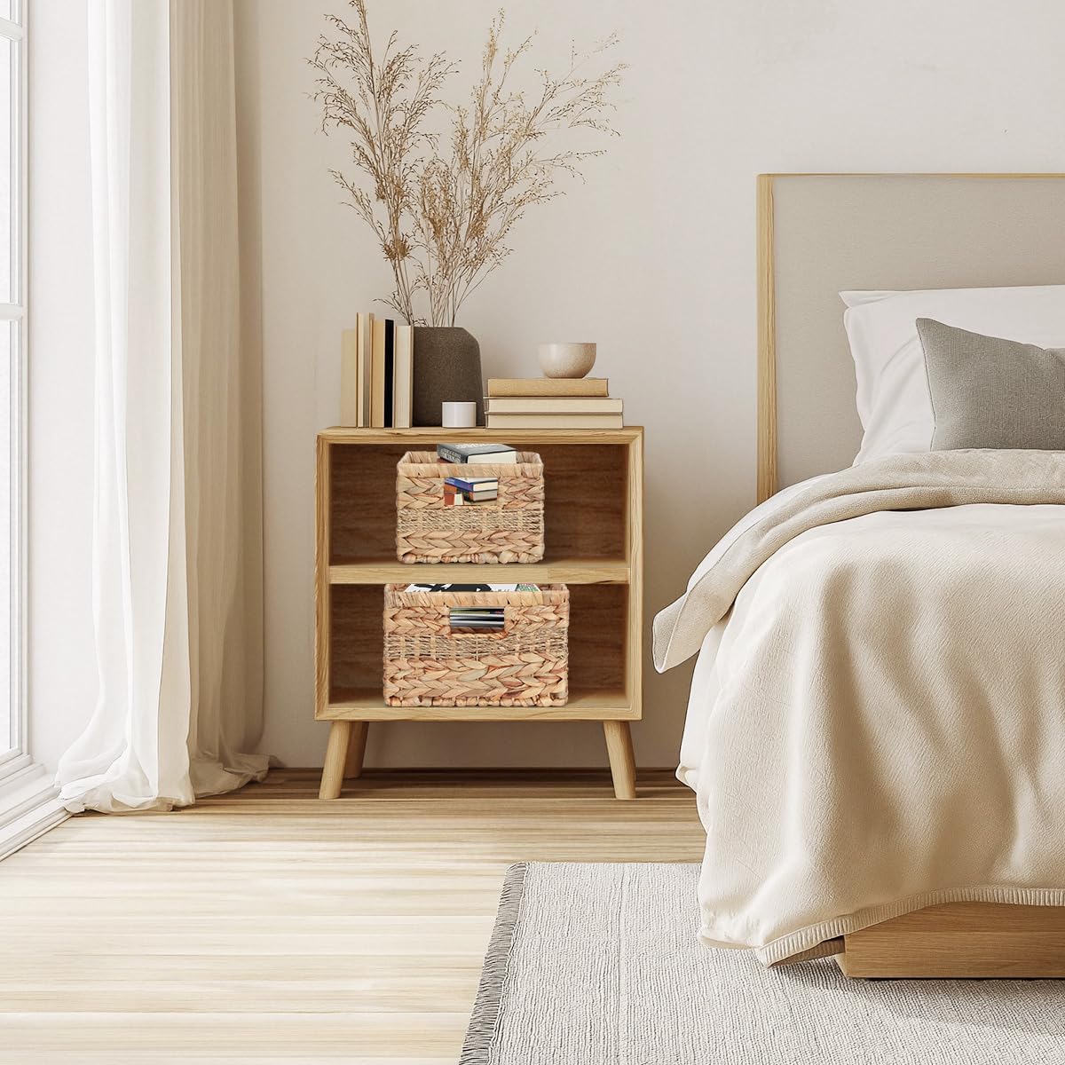 Wicker Storage Baskets with Built-in Handles, Natural Water Hyacinth and Seagrass, Decorative Handmade Storage Baskets for Organizing, Set of 2, Large and Small