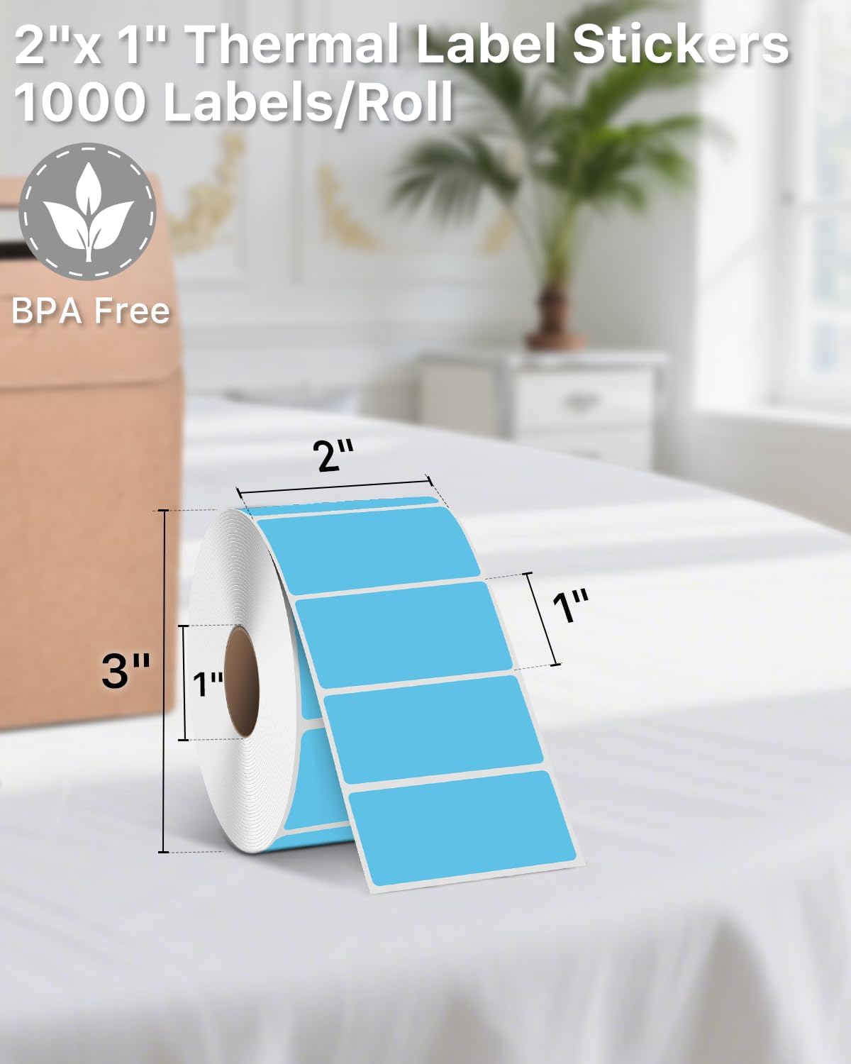 iEager 2x1 Inch Thermal Labels, Blue Rectangle Thermal Printer Stickers, Durable Shipping Label Printer Sticker for Barcode, Name, Address, 1000 Labels/Roll