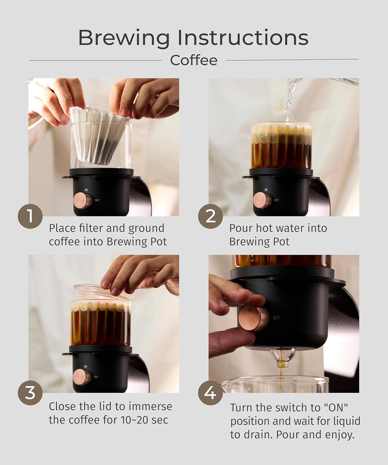 - Stylish Centerpiece: Elevate coffee chats or tea sessions with a brewer that's stylish and functional. Its sleek glass coffee maker and minimalist stand blend into modern kitchens, perfect for hosting friends or mindful solo breaks